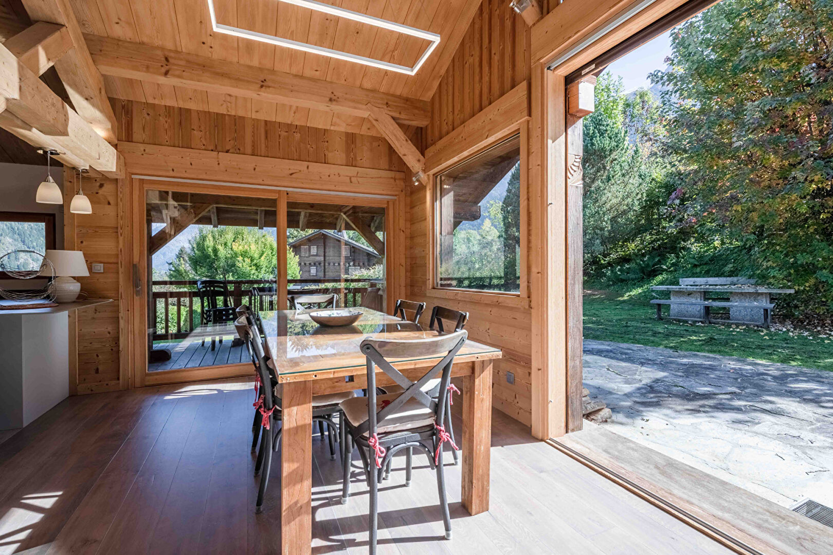 Come and discover this superb recently renovated family chalet, ideally located just a few minutes from the center of Les Houches. Set on a plot of approximately 1,100 sqm, the chalet unfolds over three levels and offers around 200 sqm of living space. The ground floor features a welcoming entrance leading to three double bedrooms, each with its own ensuite shower room, as well as a fourth bedroom. Upstairs, a bright and spacious living area combines a lounge, dining room, and fully equipped open kitchen, all opening onto a south-facing terrace and garden. An elegant fireplace adds warmth and character, while a generous master suite with bathroom and a cozy TV mezzanine complete this level. The beautifully landscaped garden enjoys optimal sunshine and offers unobstructed views of the majestic Mont-Blanc range ? a serene and private setting, perfect for embracing the mountain lifestyle.