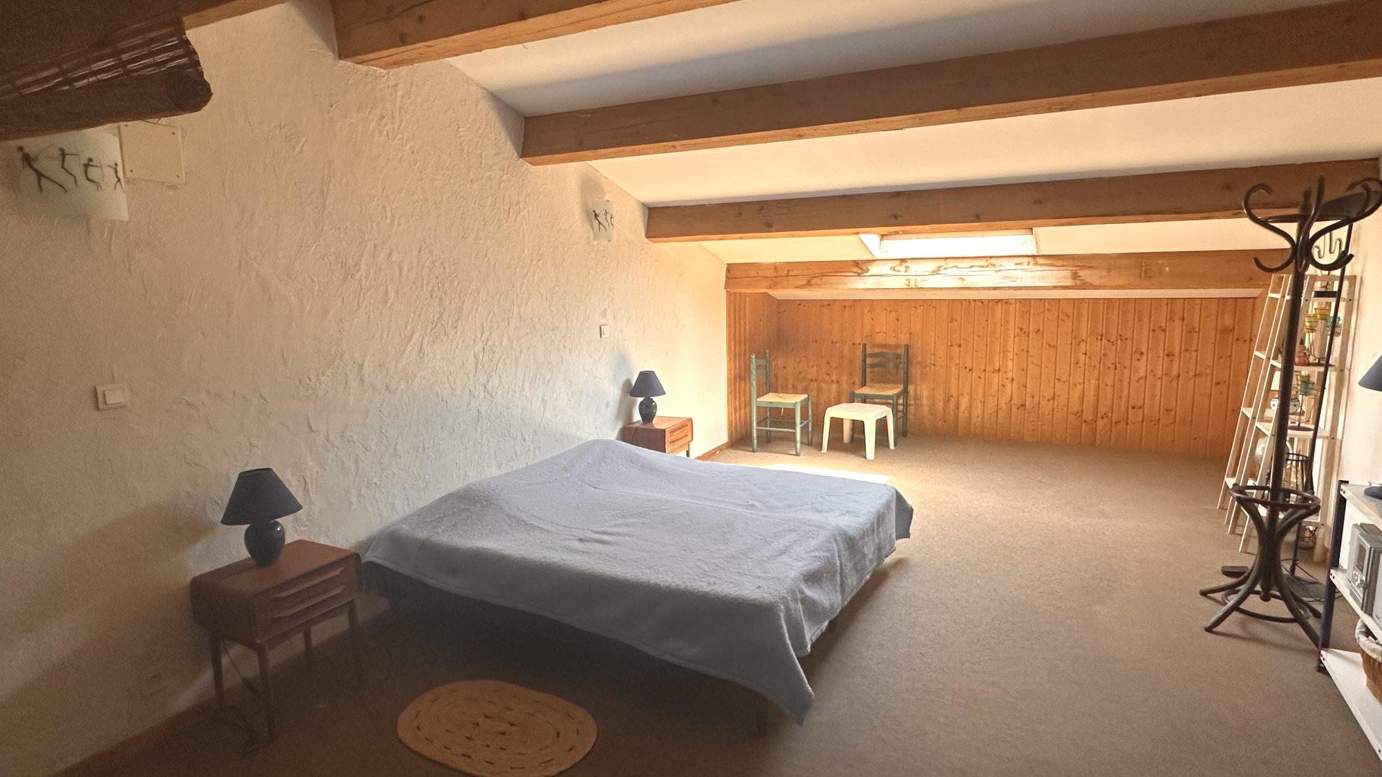 The property offers three bedrooms, including a charming attic-style bedroom on the upper level, along with a bathroom and a shower room.