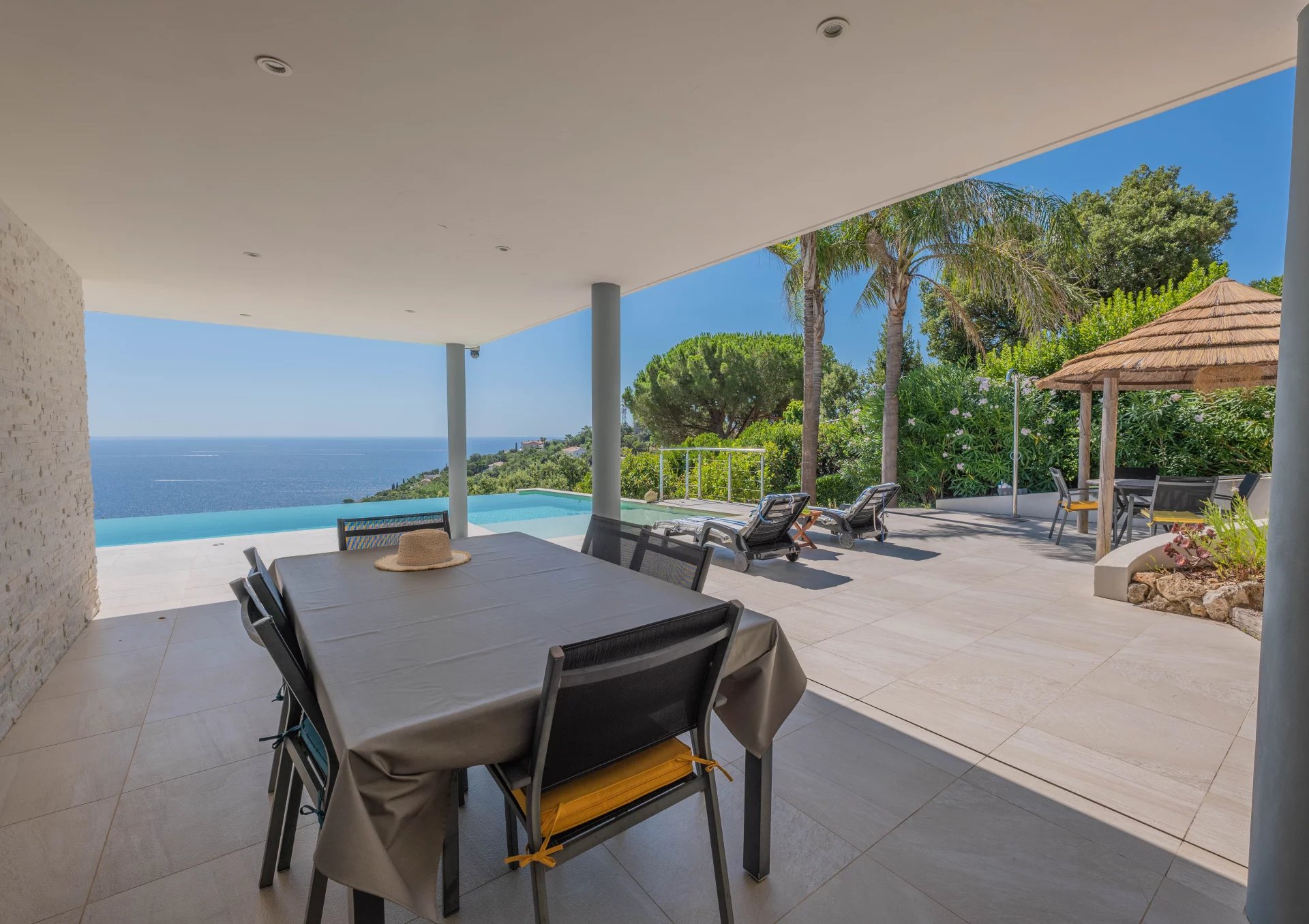 Outside, you’ll find a stunning infinity pool with a large sun terrace, where you can relax in complete peace while enjoying the exceptional sea views.