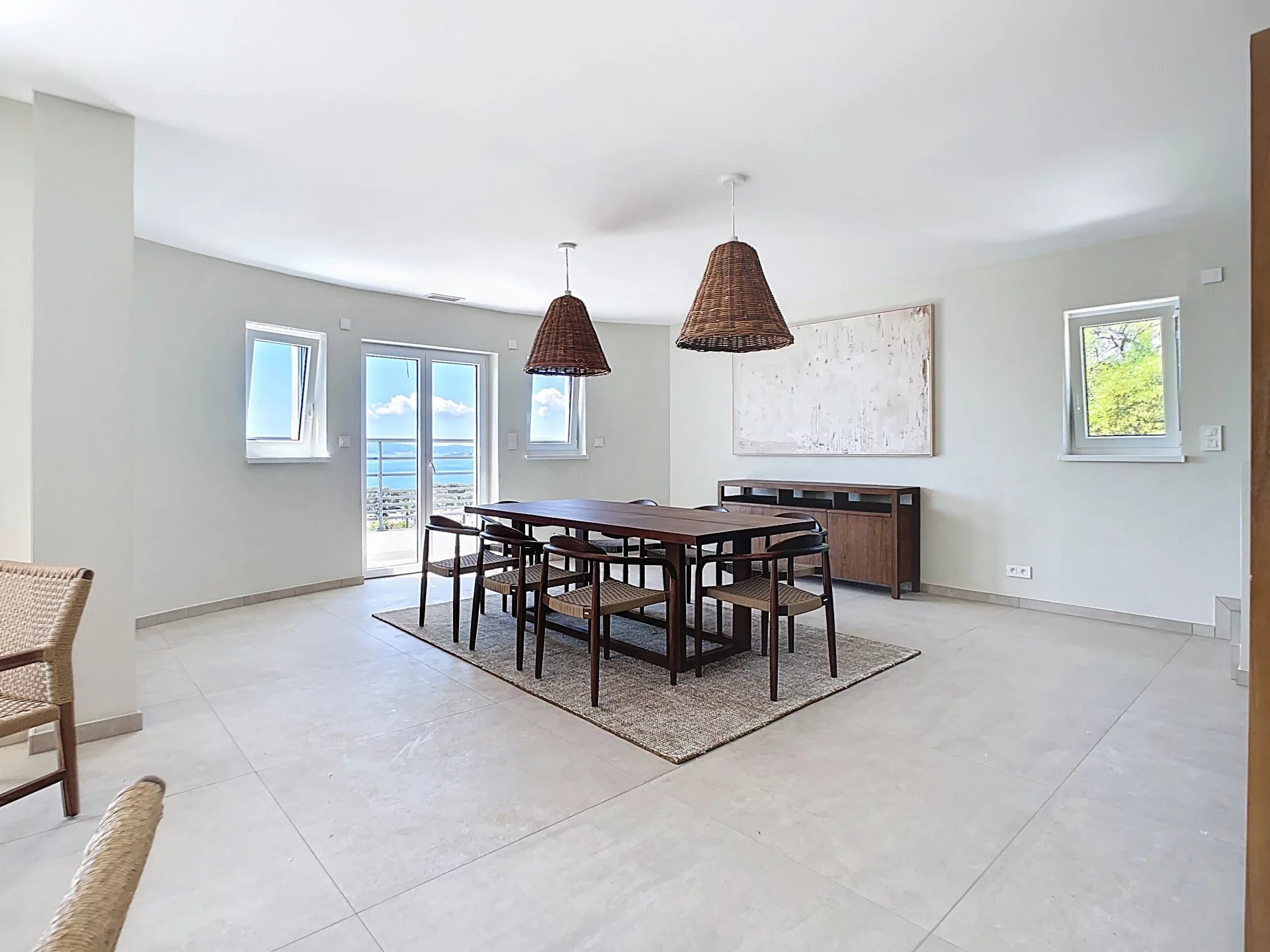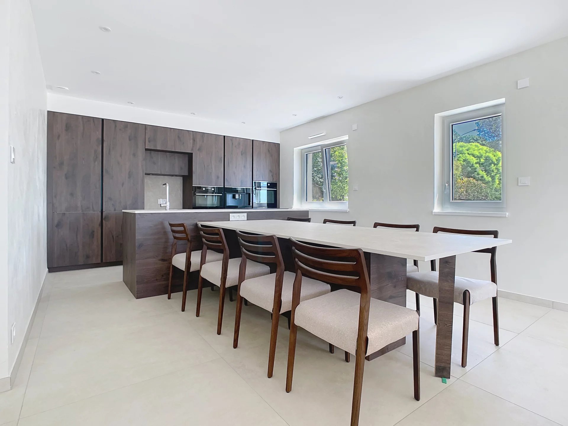 Bathed in natural light, the spacious open-plan living and dining area features a sleek new kitchen, perfect for both everyday living and entertaining. Large windows and fluid transitions between the indoor and outdoor spaces invite the Riviera light into every corner.