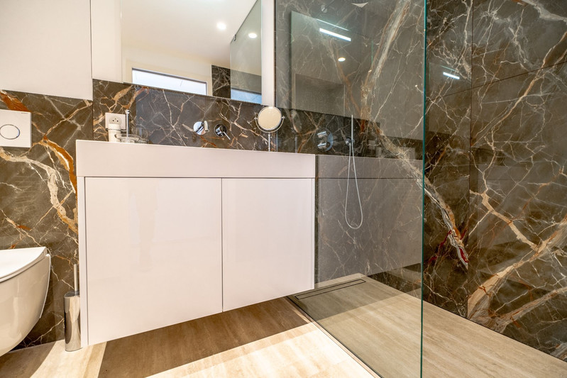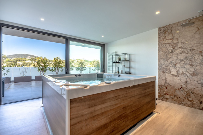 Located in a quiet, residential area, this superb contemporary villa has been built with high-quality materials and offers beautiful sea views. Spread over three levels with an elevator, the villa is designed for comfort and modern living.