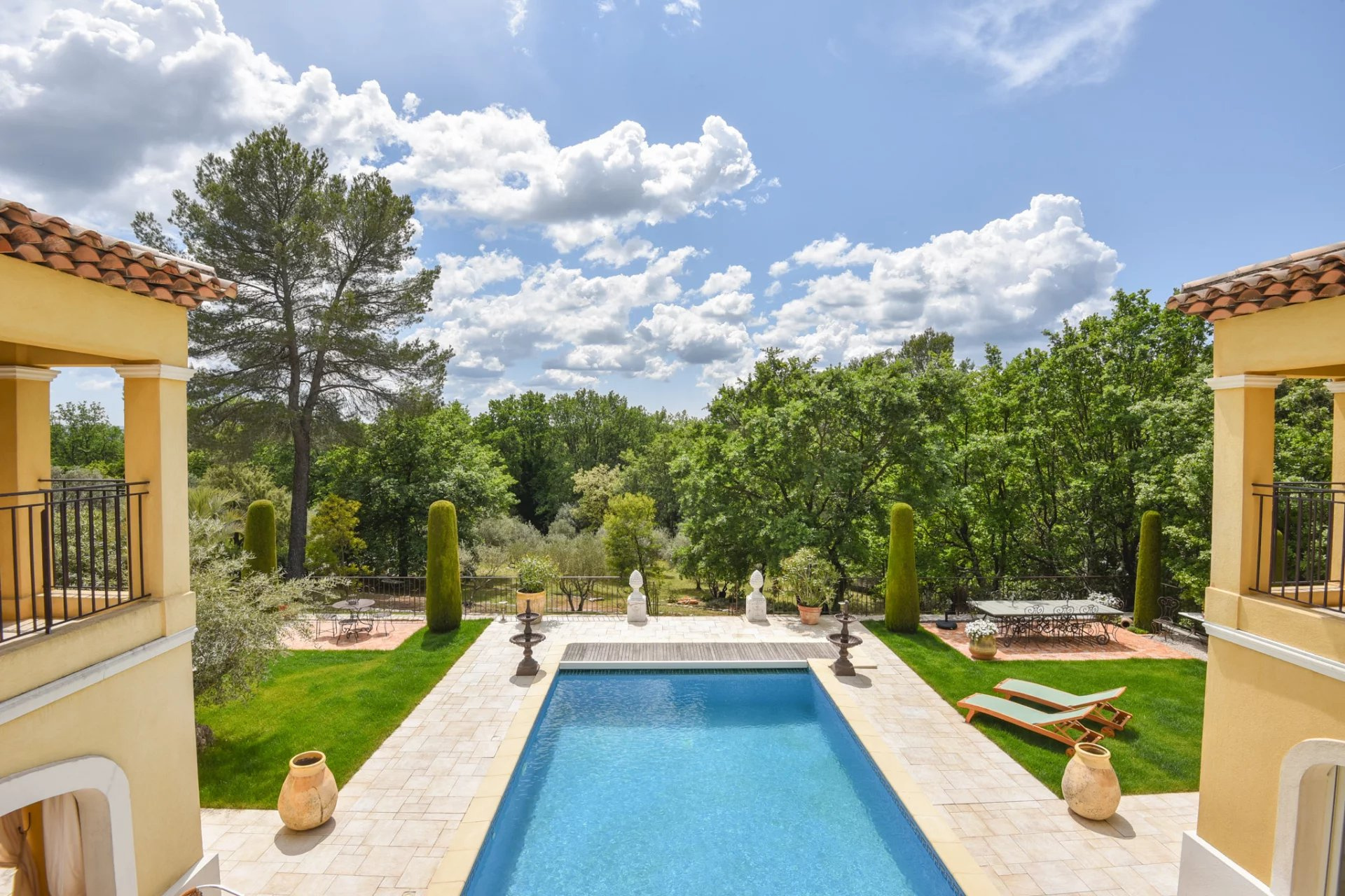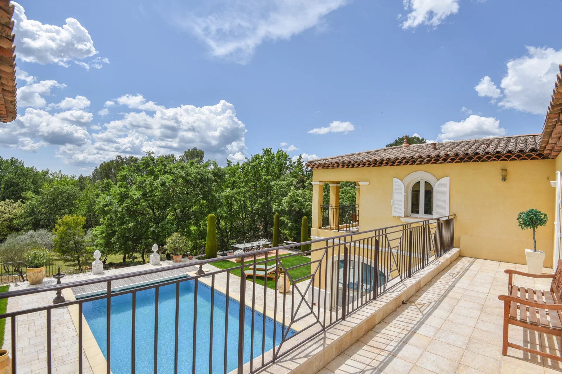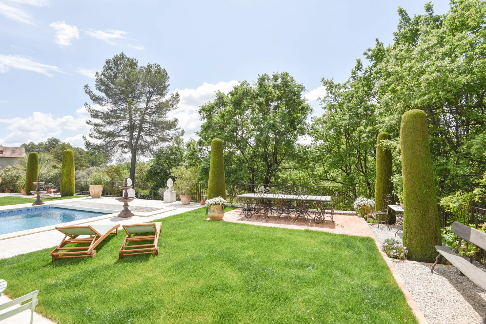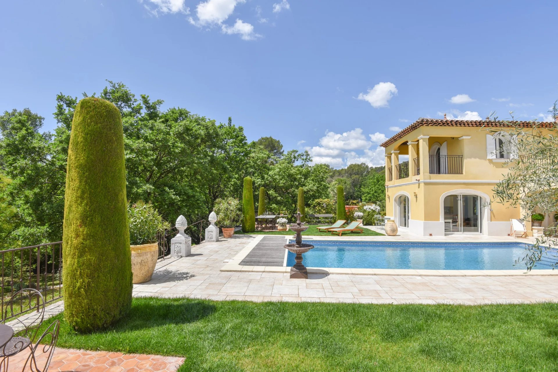 It contains no less than 3 entrance gates. A patio surrounds a heated 10x5m pool and leads to a beautiful stately garden and an ancient olive grove.