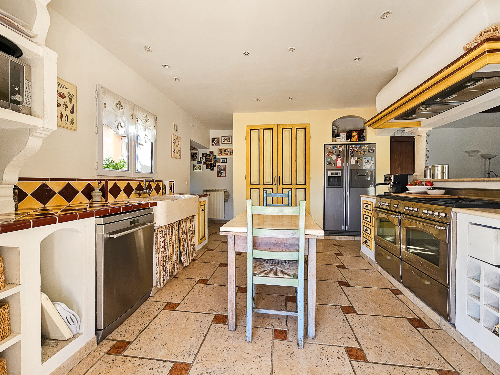 Outside, the property offers several relaxation areas with three large covered terraces totaling 74 m2, a summer kitchen, a pool house, and a stunning 15 x 5-meter infinity pool, all set in a peaceful and lush environment.