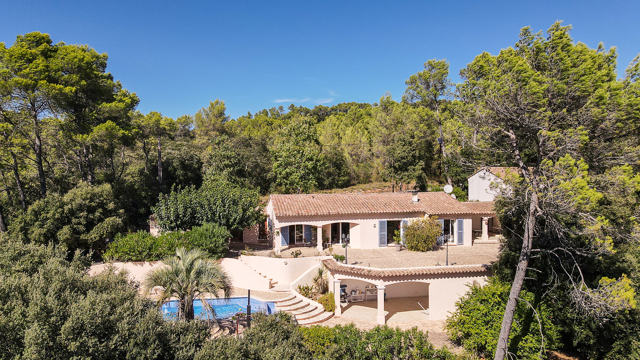 In Lorgues, in a quiet and privileged setting at the heart of nature, a magnificent villa of approximately 190 m2 of living space with 5 bedrooms in total and exceptional panoramic views.
