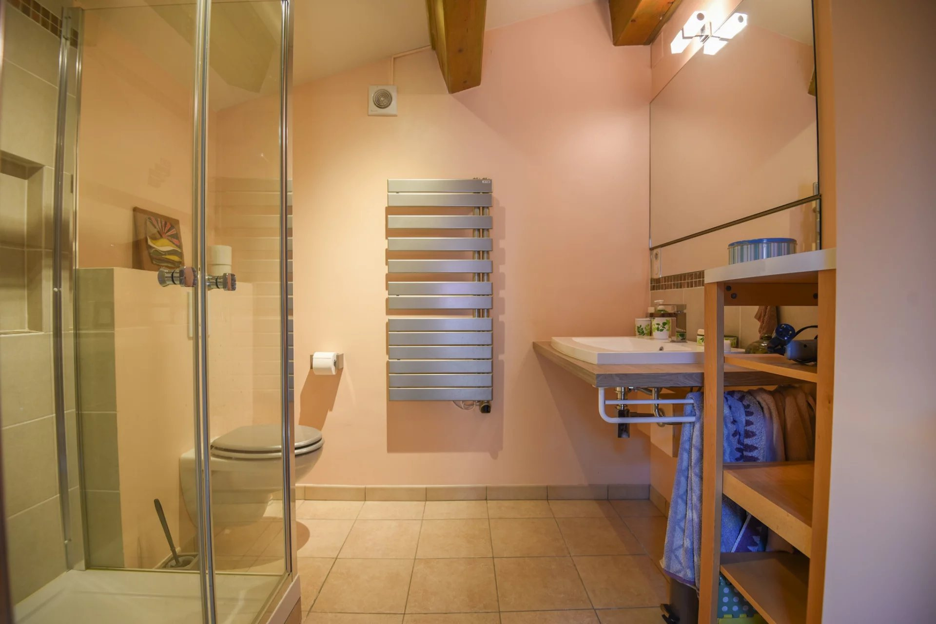 An additional asset of this property is its adjoining apartment with a separate existing access, perfect for hosting guests or for a rental project. This cosy space includes a kitchen, living room, two bedrooms, a bathroom, and a toilet.