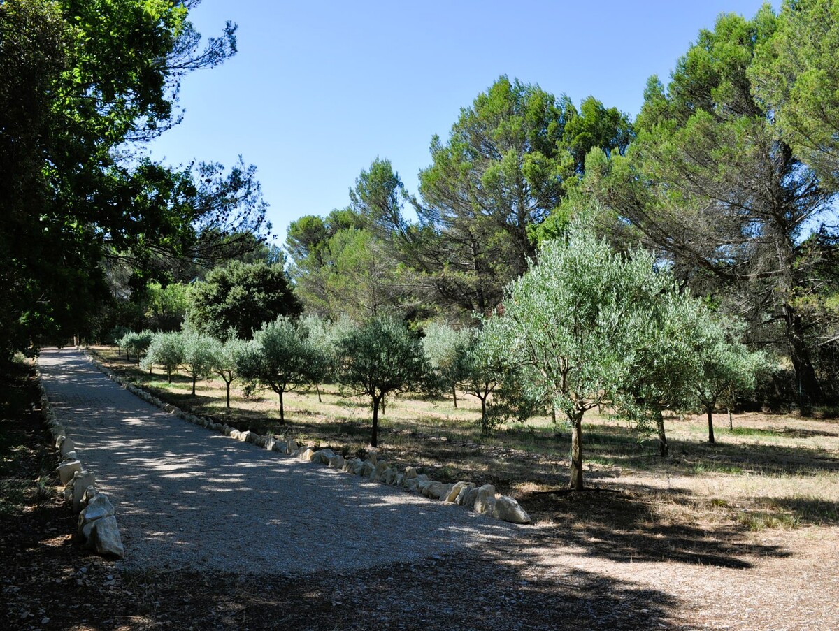 2.4 hectares of landscaped grounds with pines, olive trees, and lavender fields