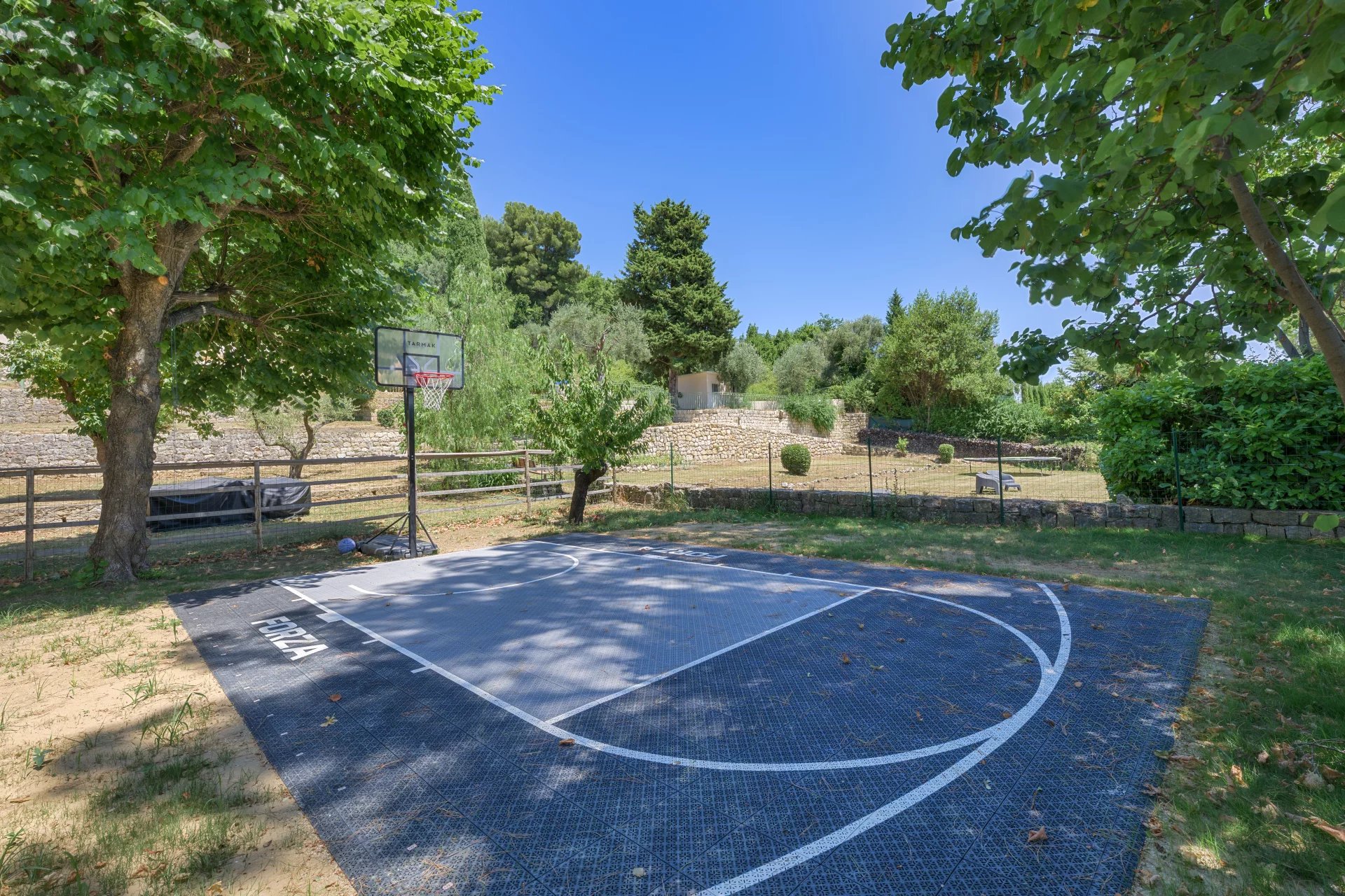 Outside, the charm of Provence shines through. The meticulously tended terraced garden features a magnificent olive grove. A bowling green sheltered by century-old lime trees invites you to extend your summer afternoons. The swimming pool, a veritable oasis of freshness, blends naturally into the landscape and opens onto an exceptional panoramic view, embracing the surrounding hills and the Mediterranean Sea in the background.