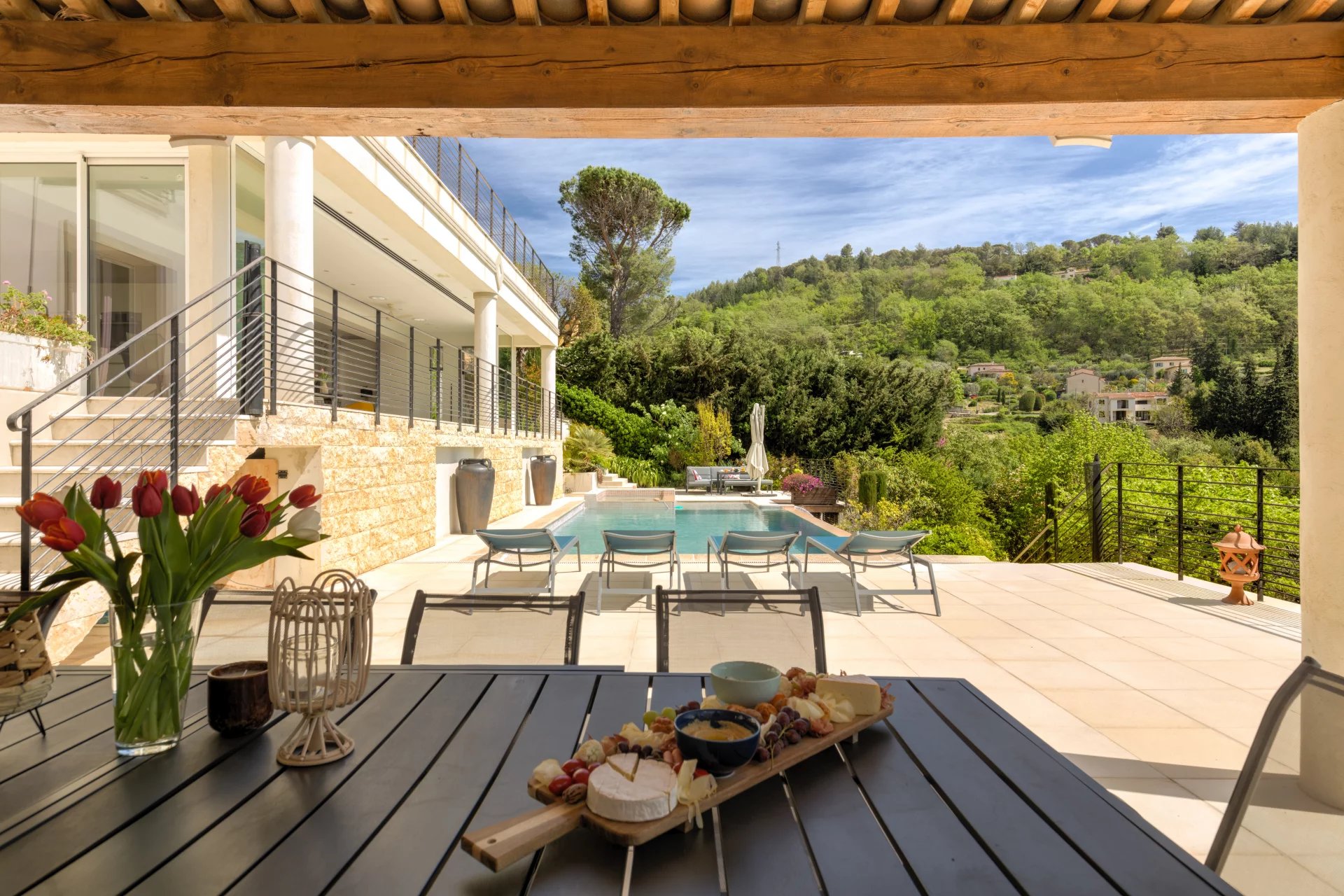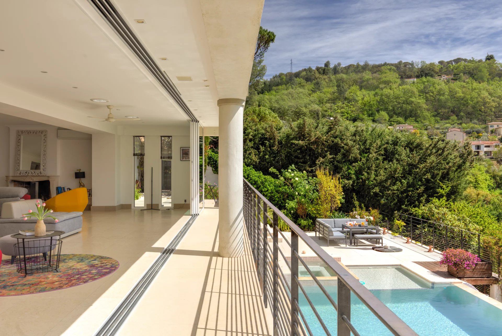 Nestled high, out of sight, this beautiful house of 300m2 enjoys a breathtaking panoramic view of the Grasse countryside. Located within walking distanc of Chateauneuf and near the Lake and its shops, the property is in very good condition and offers quality services.