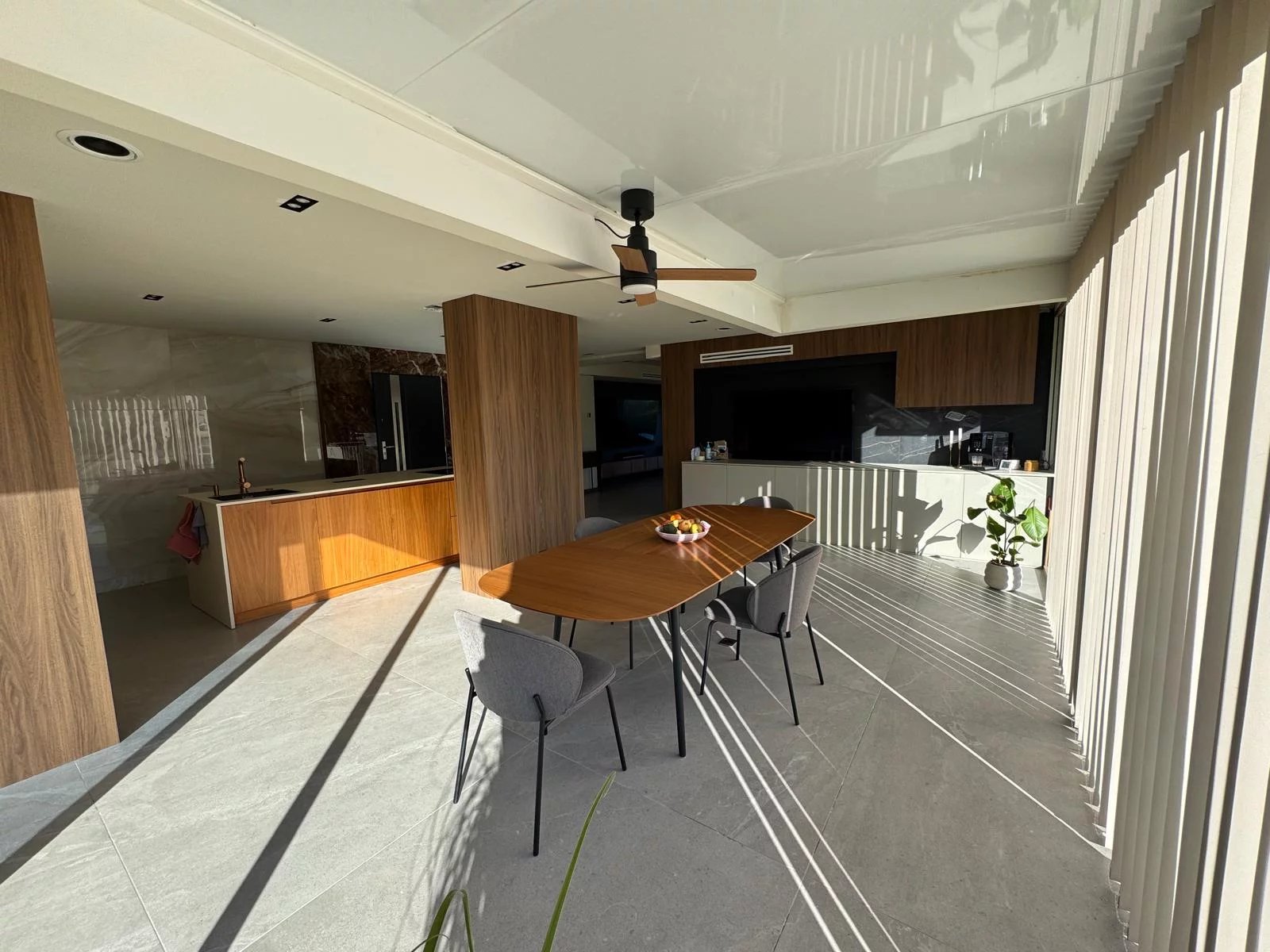 In a quiet residential neighborhood, within a secure residence with a swimming pool, this approximately 177m2 top-floor apartment.