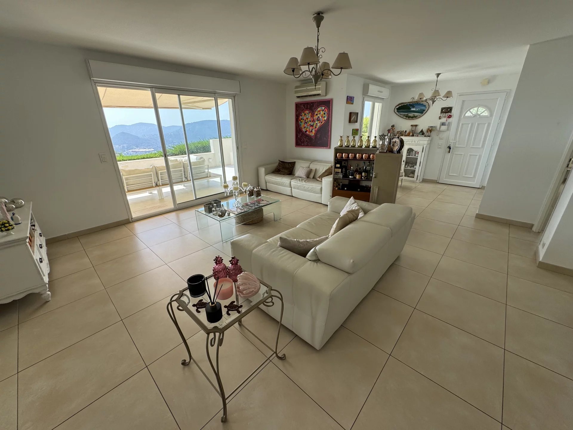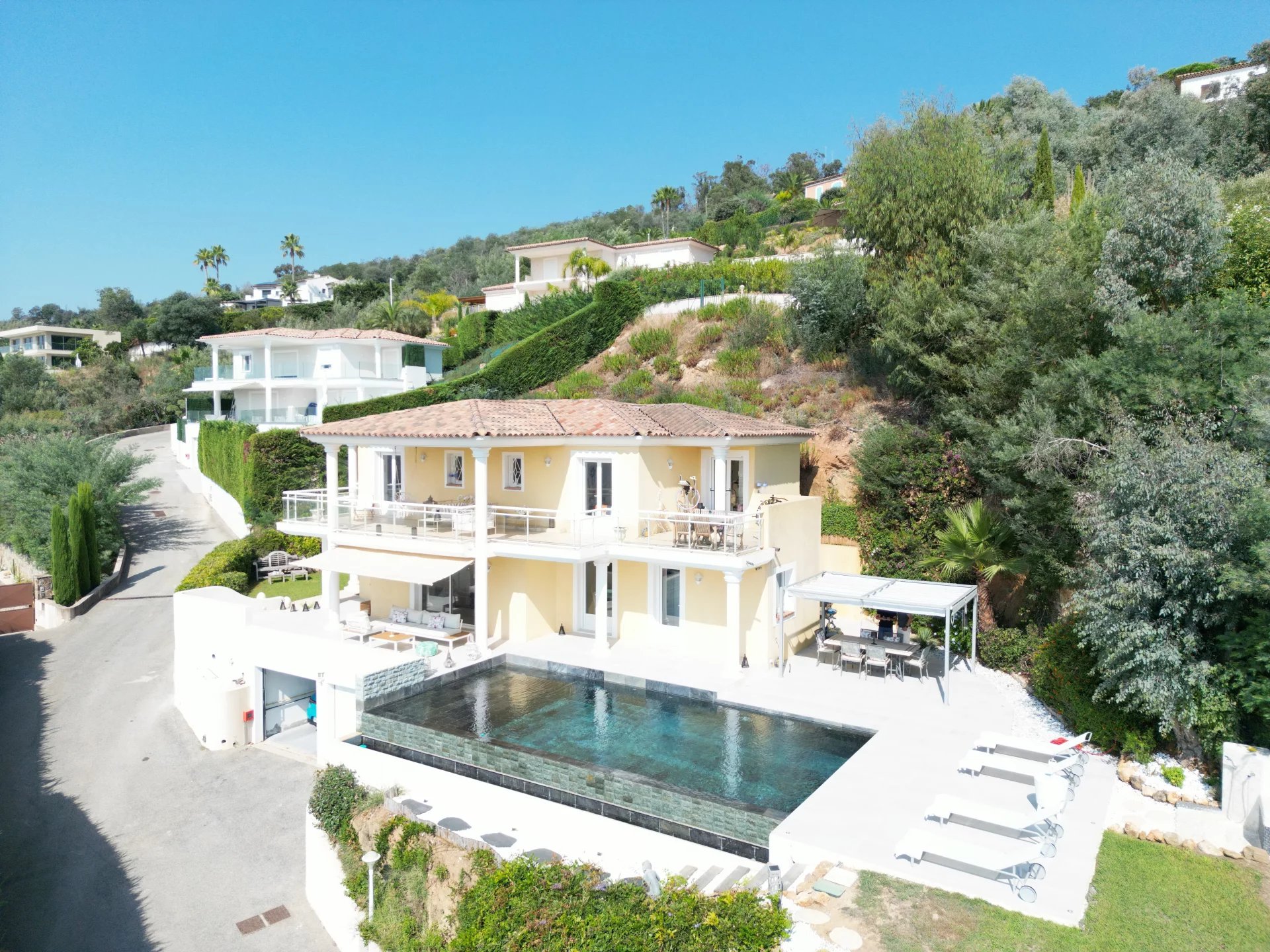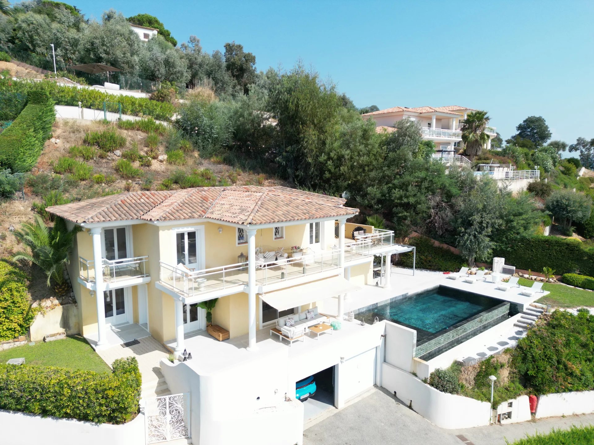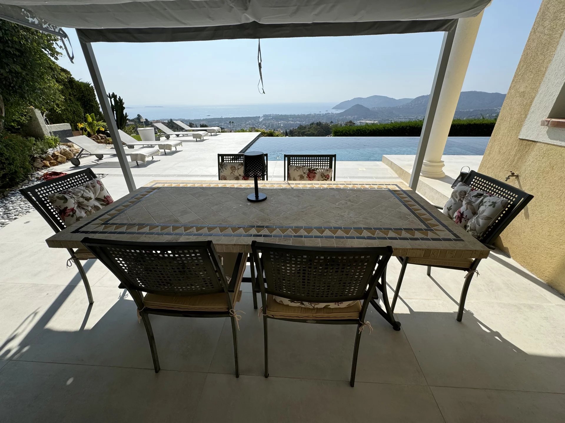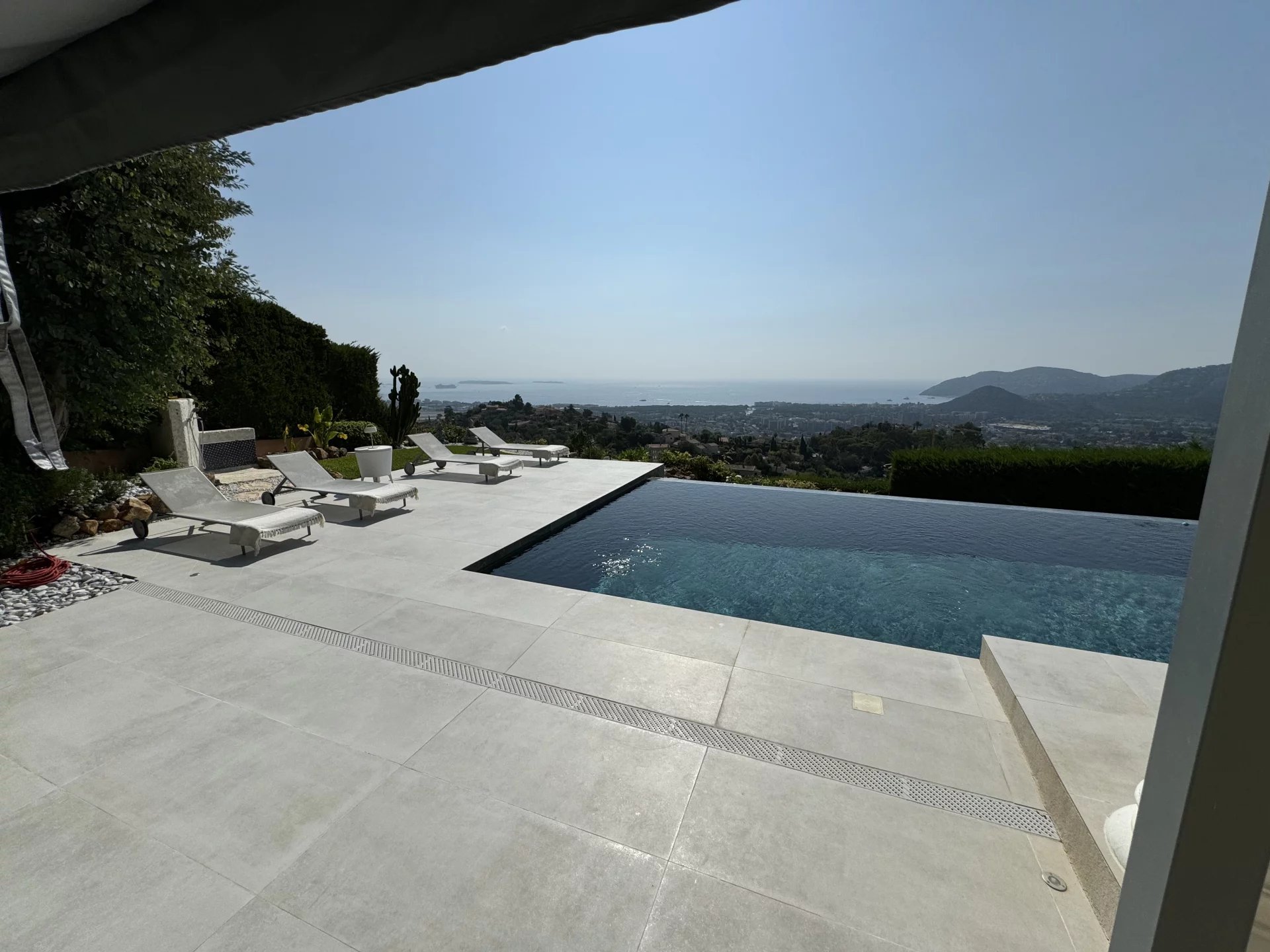 Nestled on the heights of Mandelieu-la-Napoule, this exquisite 180 m2 villa offers breathtaking 180 degree panoramic views of the sea and surrounding hills, just 5 minutes from the city center.