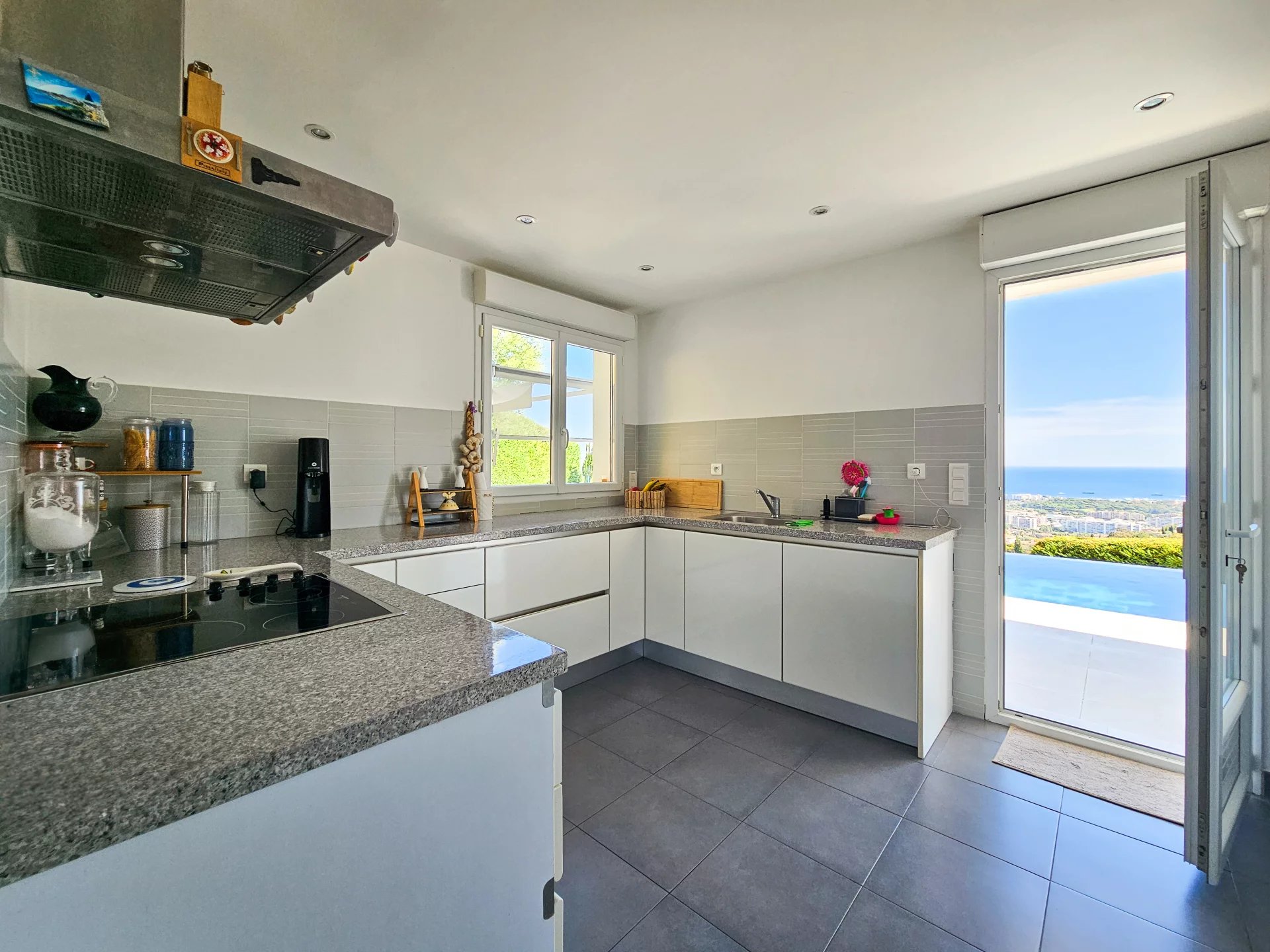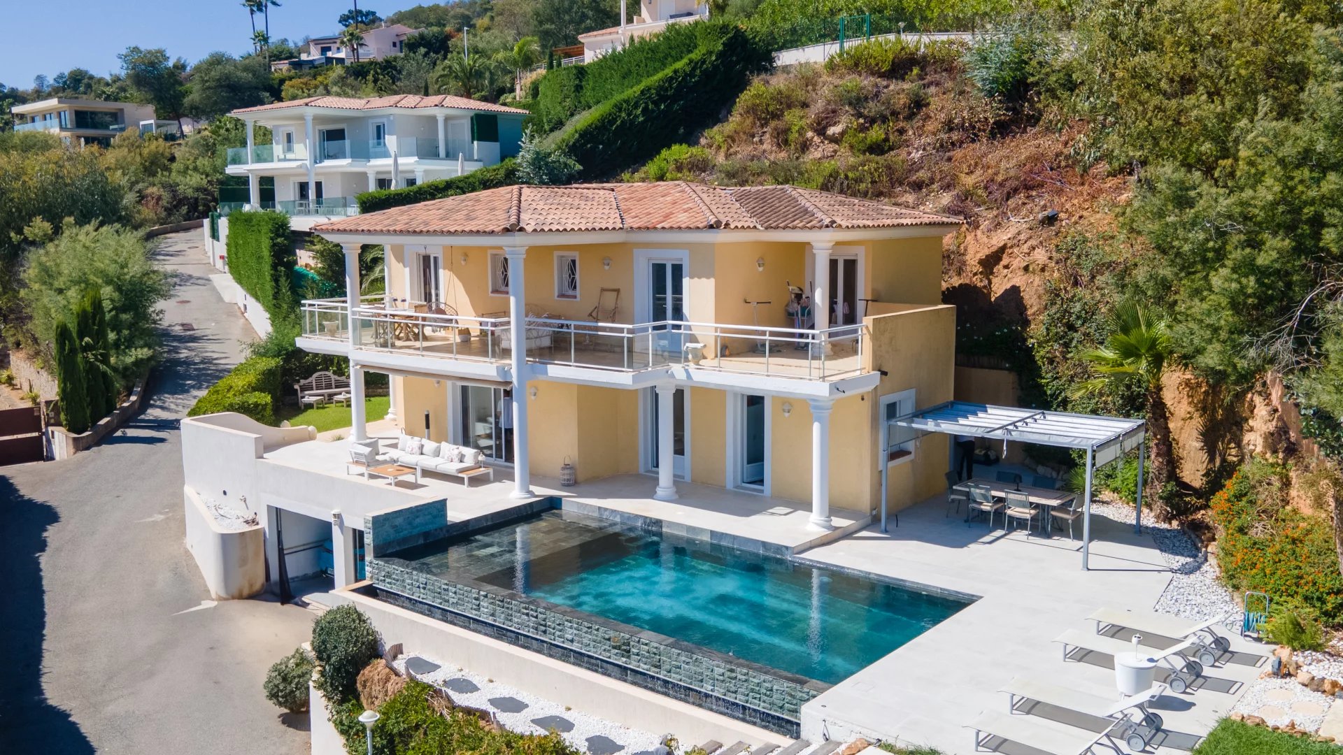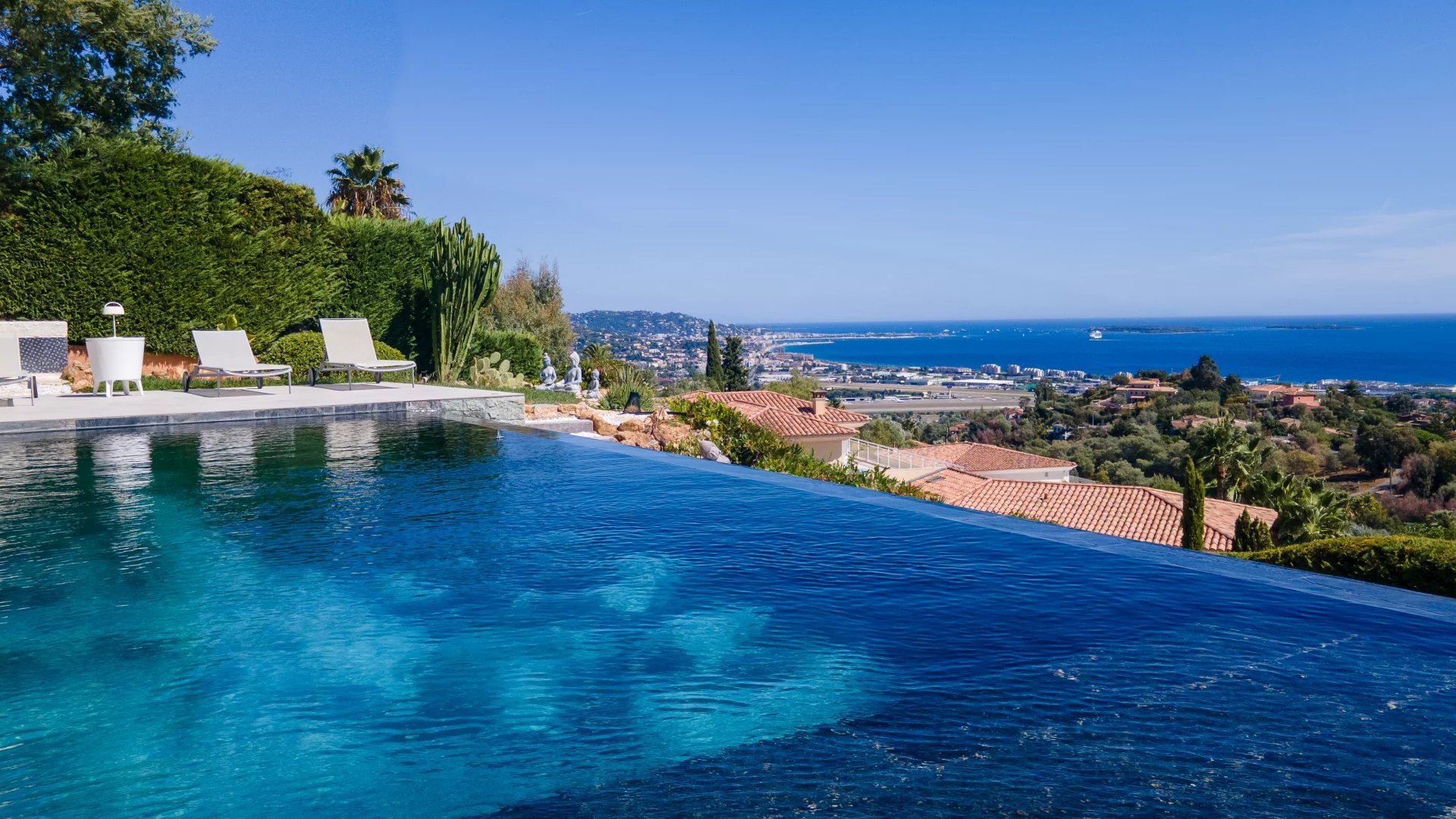 This elegant 180 m2 villa with an infinity pool offers exceptional panoramic views of the Bay of Cannes.
