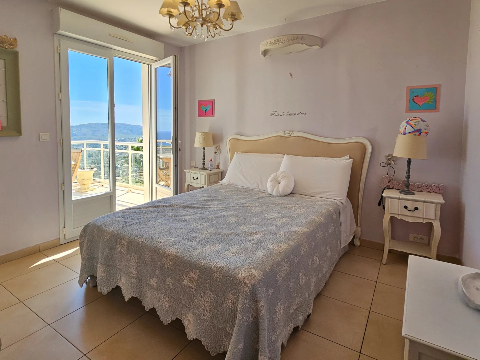 The villa features four spacious bedrooms, each with its own private bathroom, including one on the ground floor. The three bedrooms on the upper floor have access to a beautiful terrace offering breathtaking views.