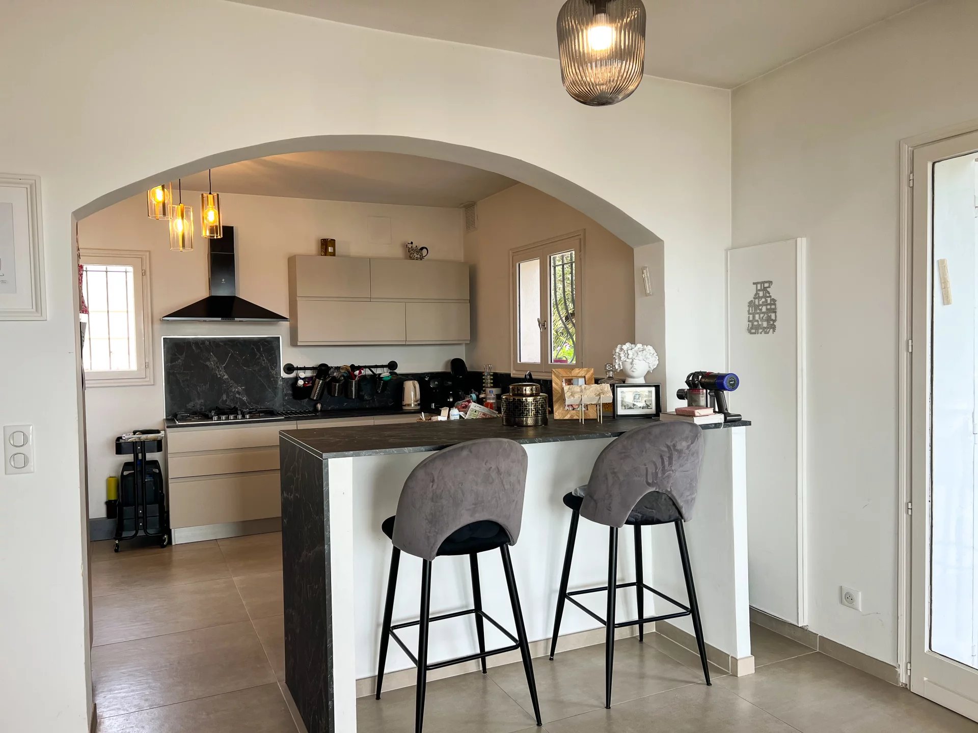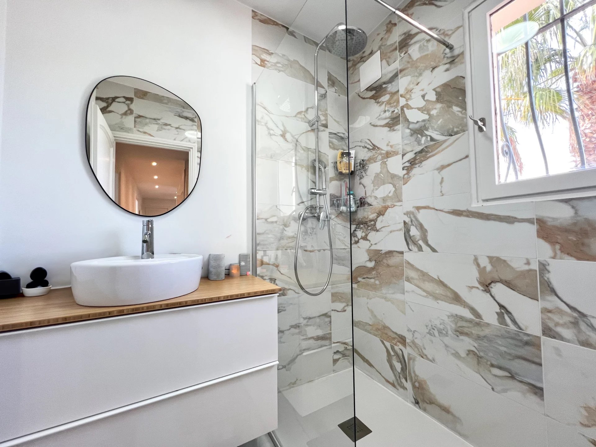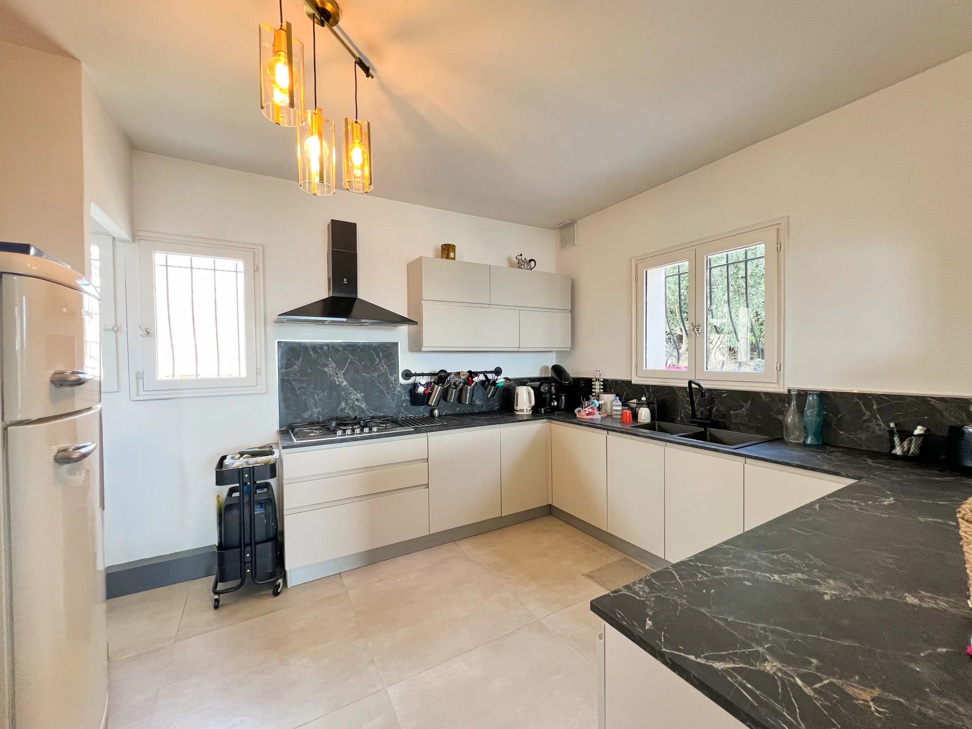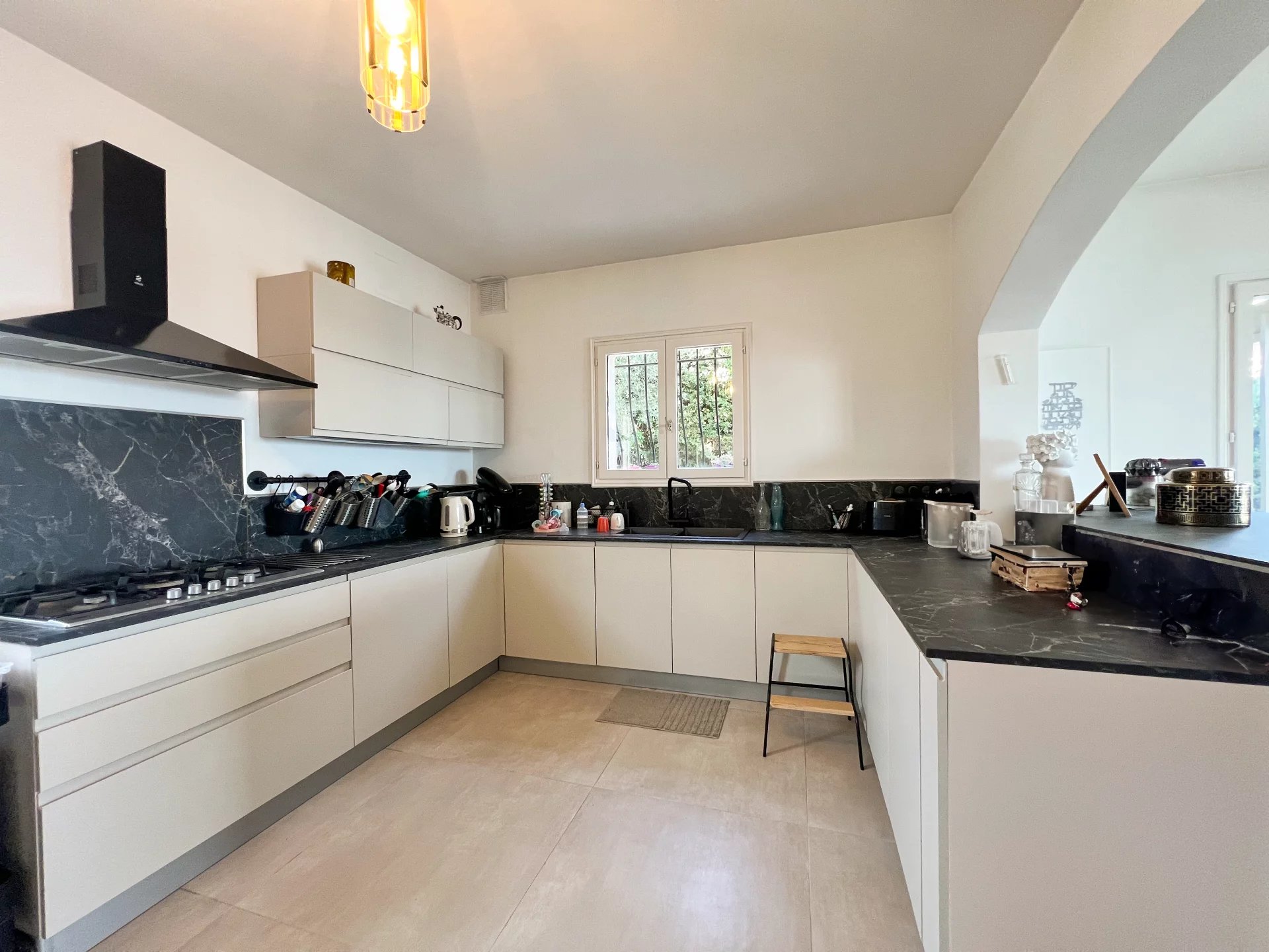 This villa is built on a plot of 948 m2, in the town of Mandelieu la Napoule known for its beautiful landscapes between the sea and the mountains, only 5 minutes from the beaches and 15 minutes from Cannes.