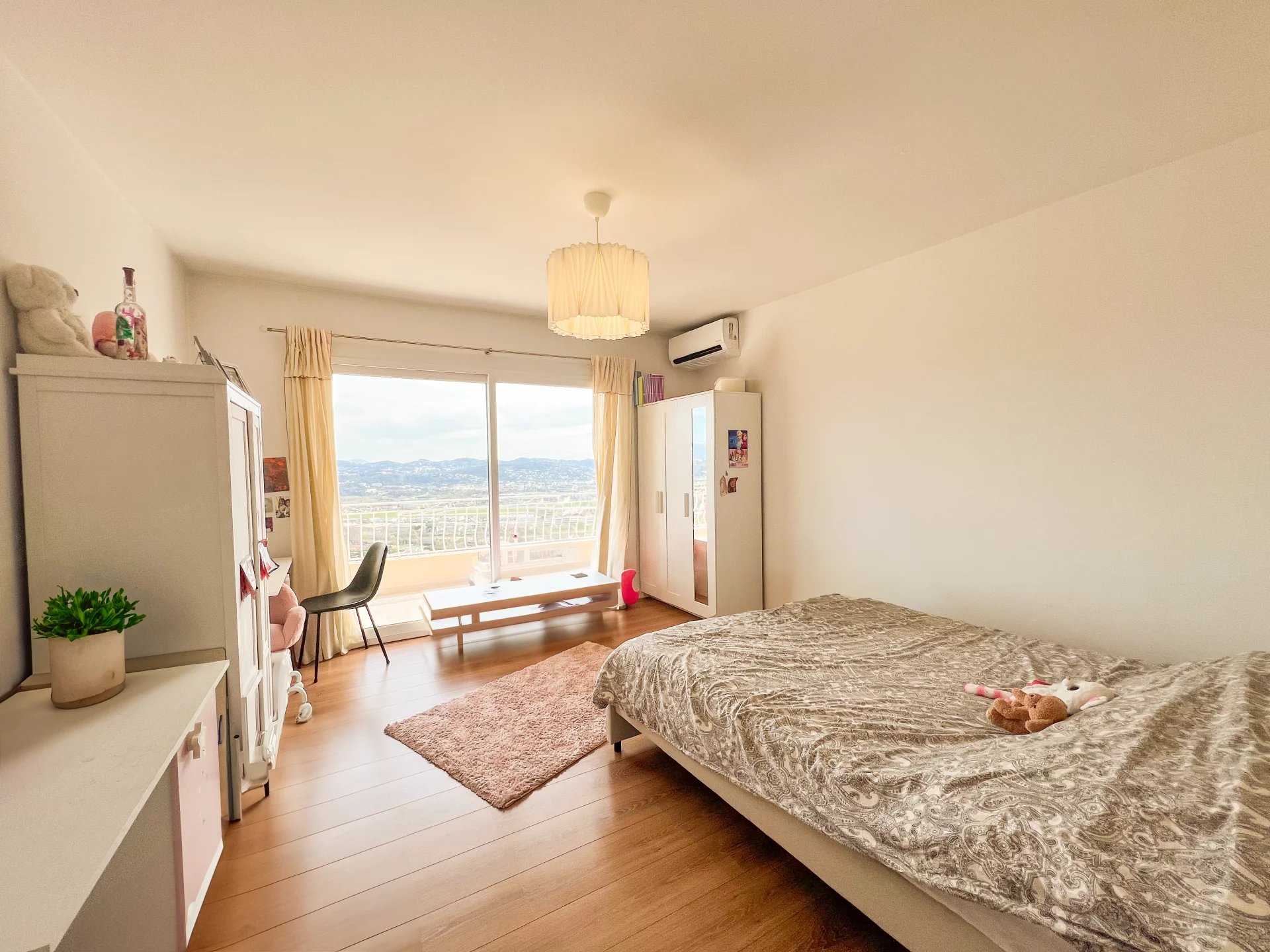 Accommodation, on the ground floor, the beautiful living space consists of a living and dining room, opening onto a large terrace allowing you to enjoy the panoramic view, as well as a large equipped kitchen, a loggia, a separate toilet and a room that can be converted into a bedroom as needed.