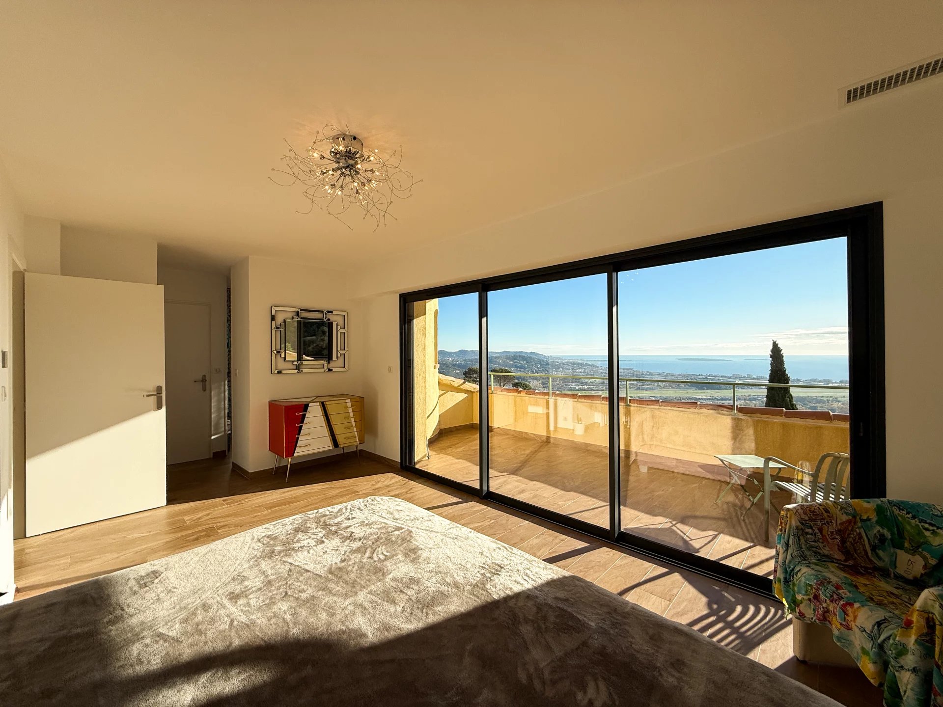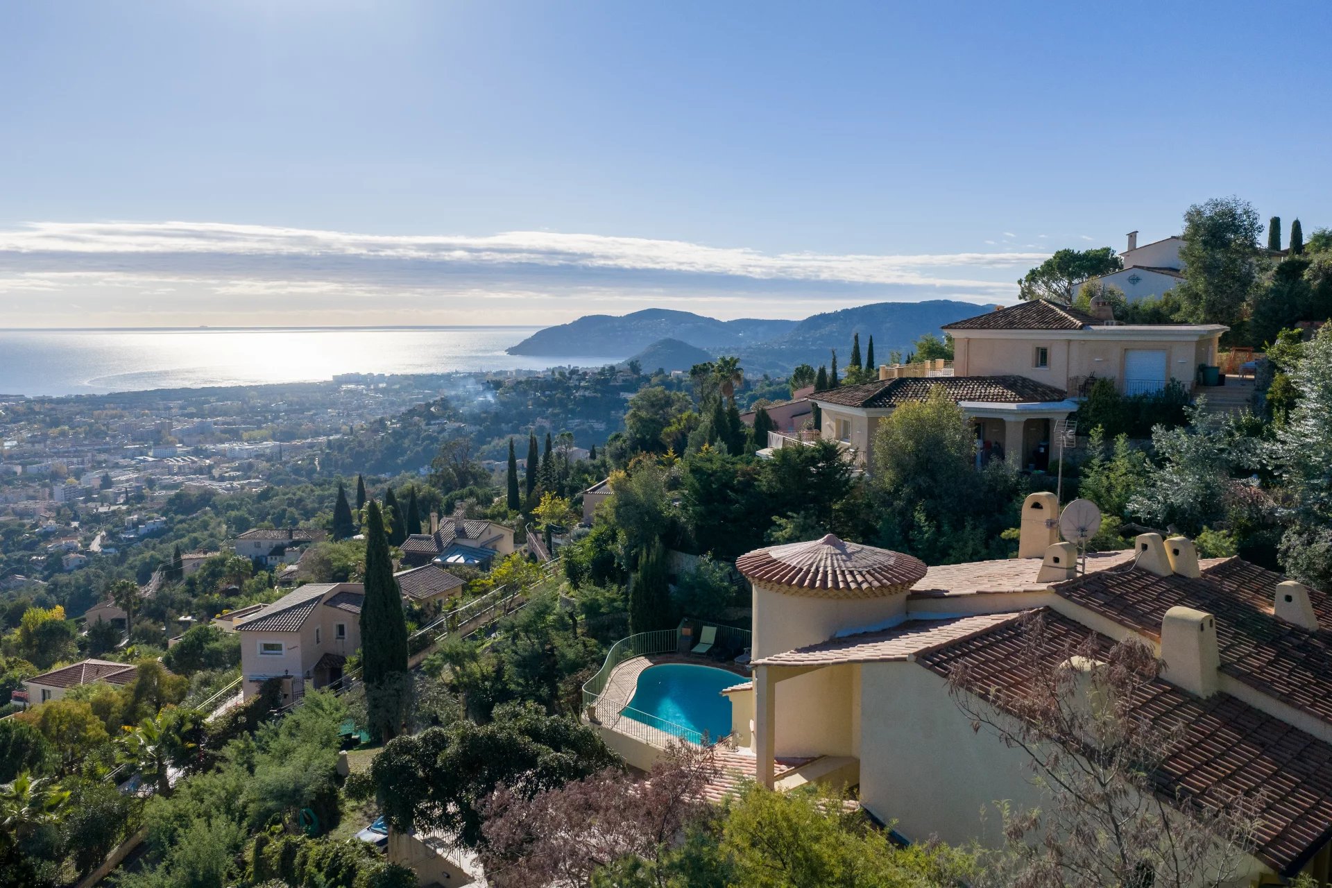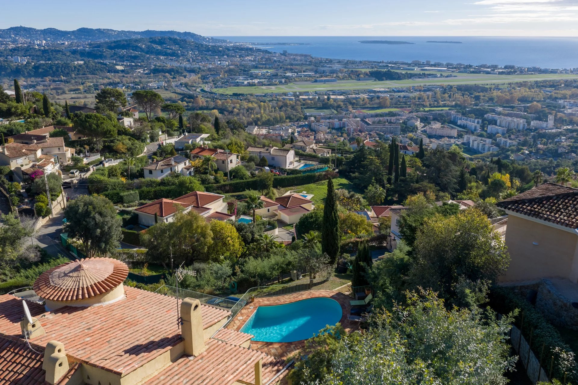This fully renovated neo-Provencal villa in 2022, with an area of 223 m2 and a swimming pool, offers a panoramic view of the Bay of Cannes.