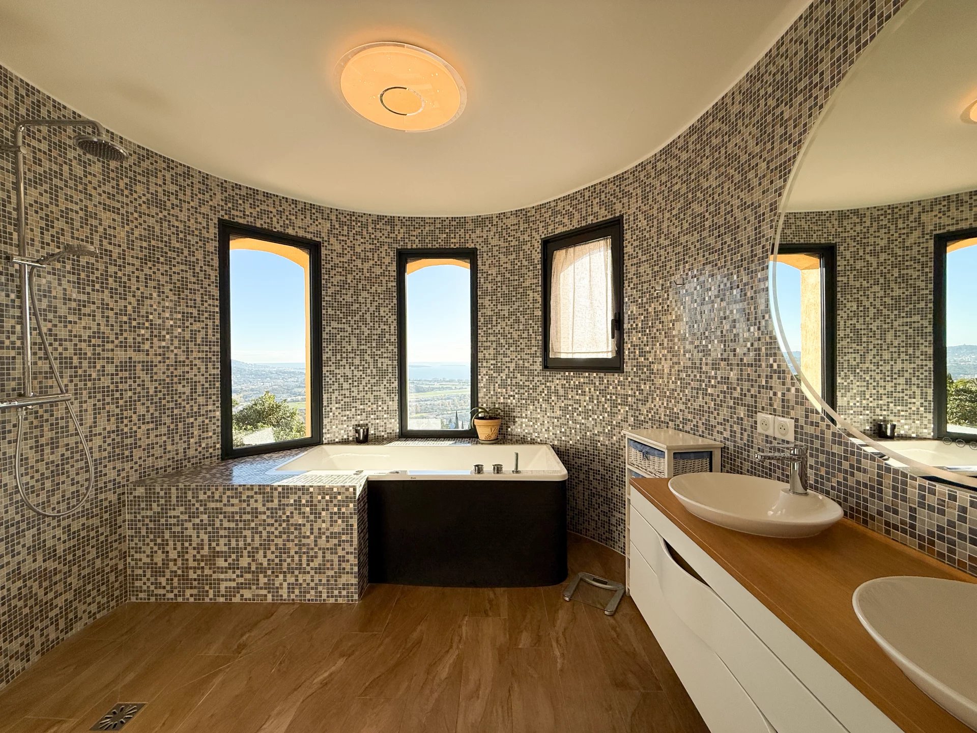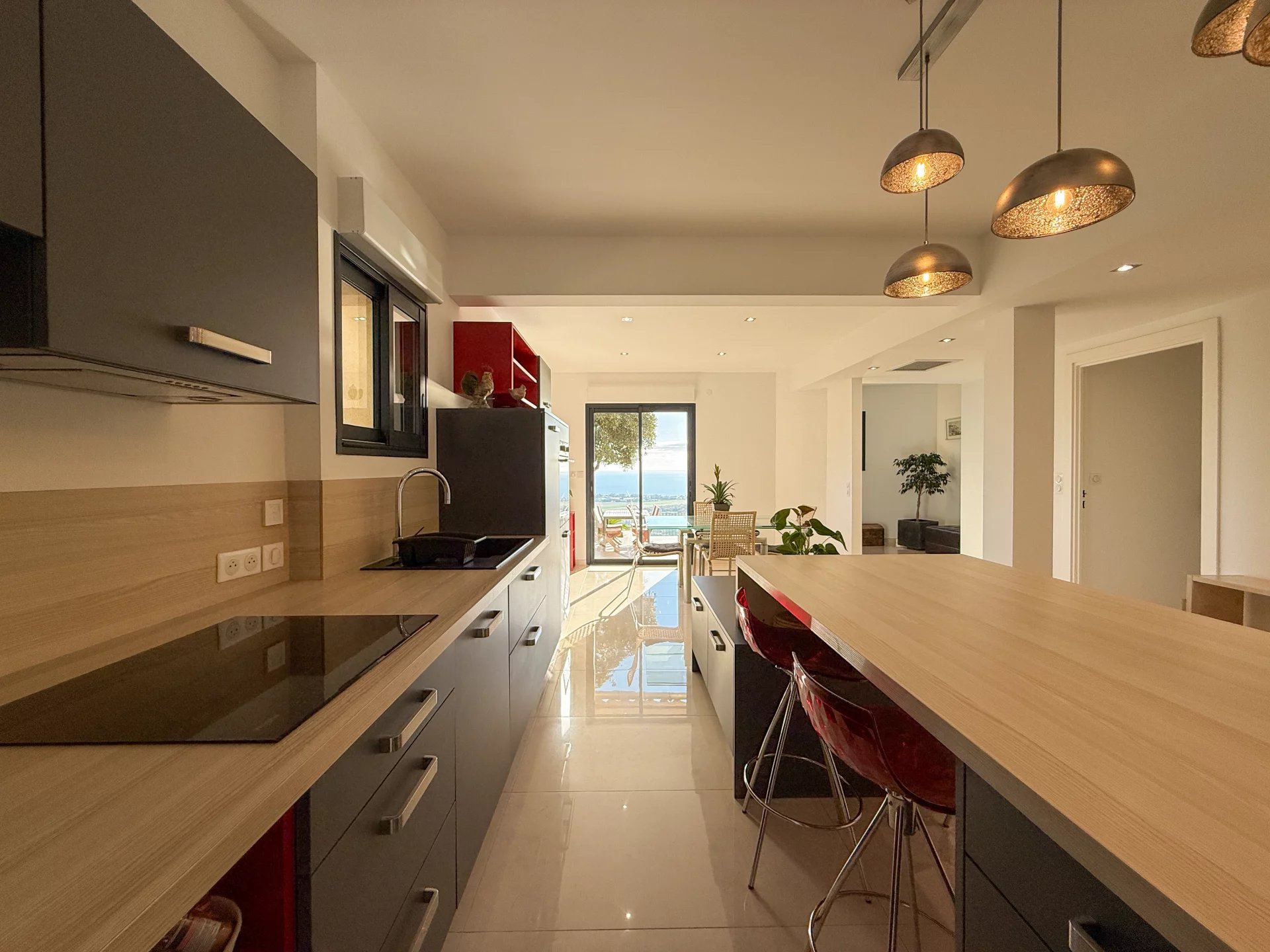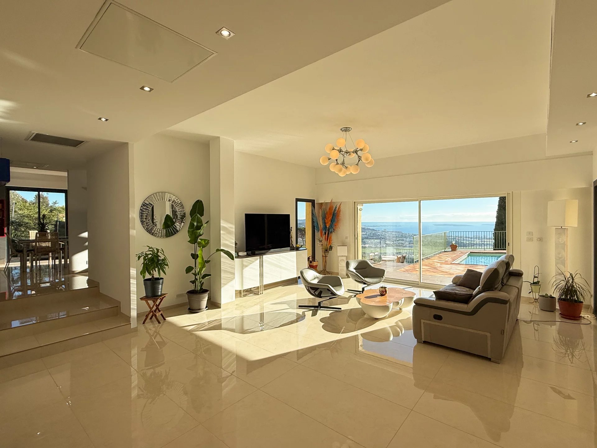 This fully renovated neo-Provencal villa in 2022, with an area of 223 m2 and a swimming pool, offers a panoramic view of the Bay of Cannes.