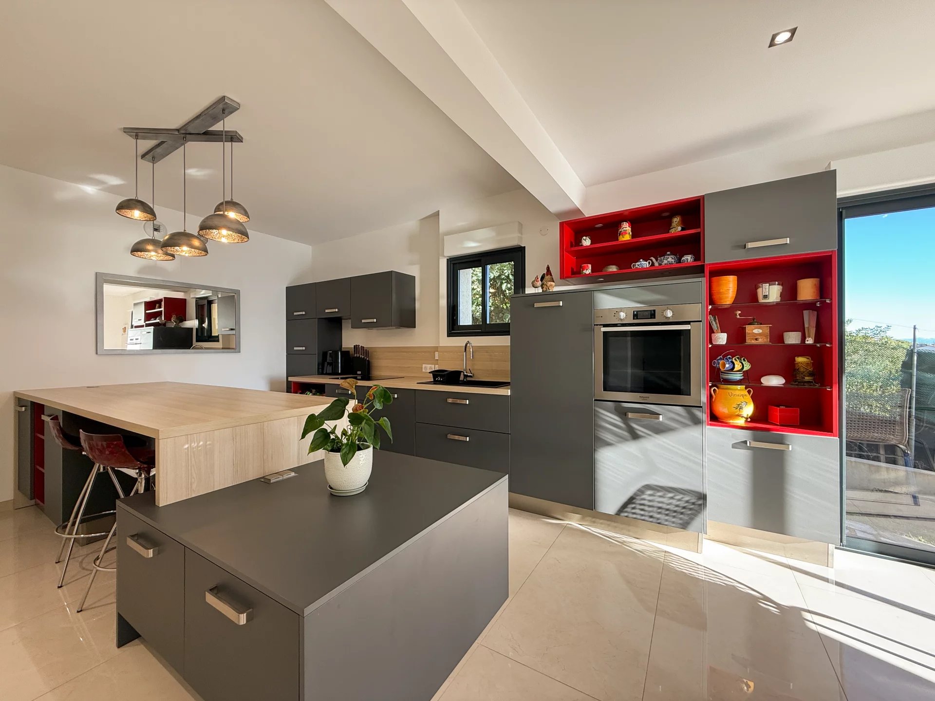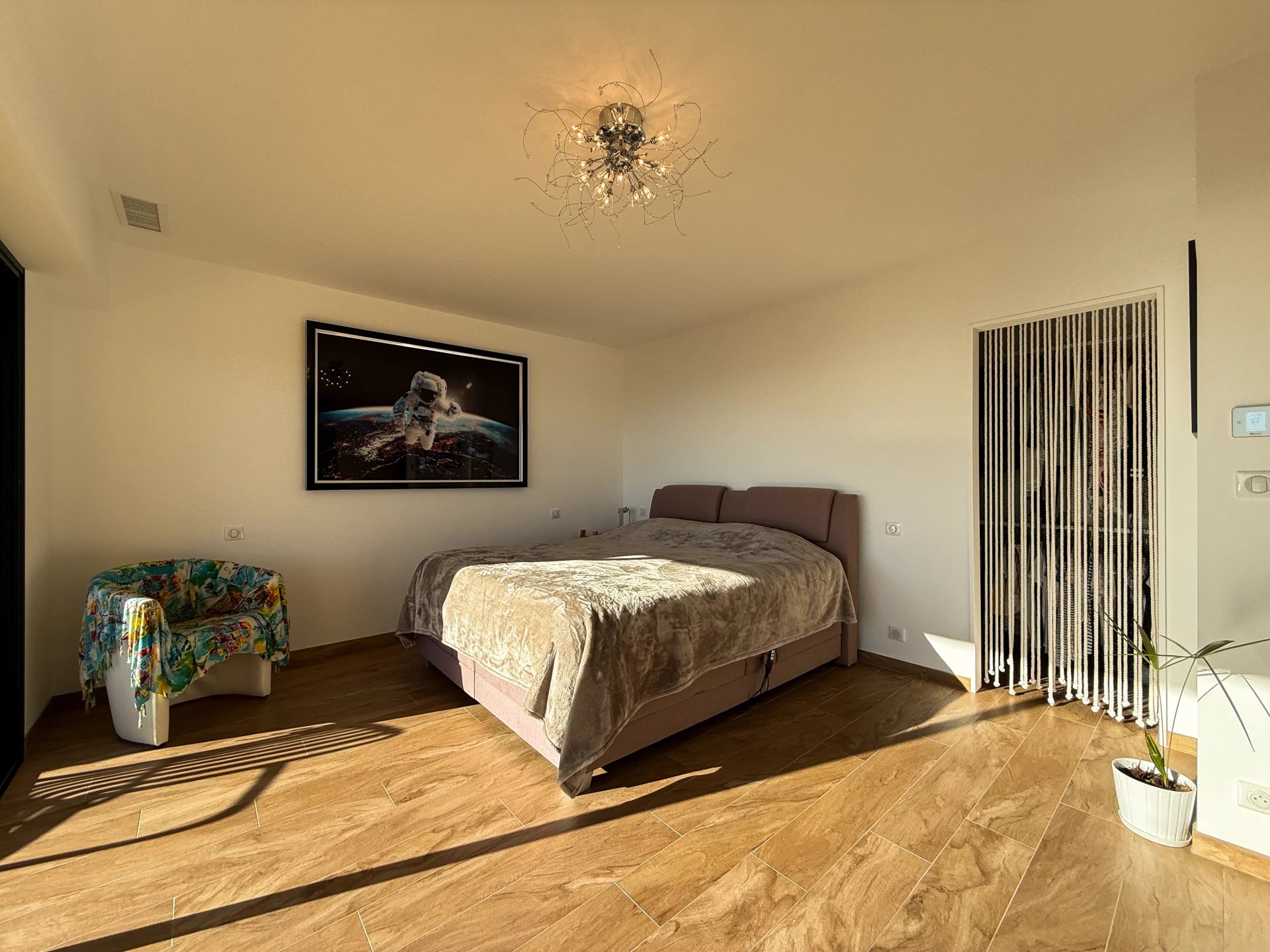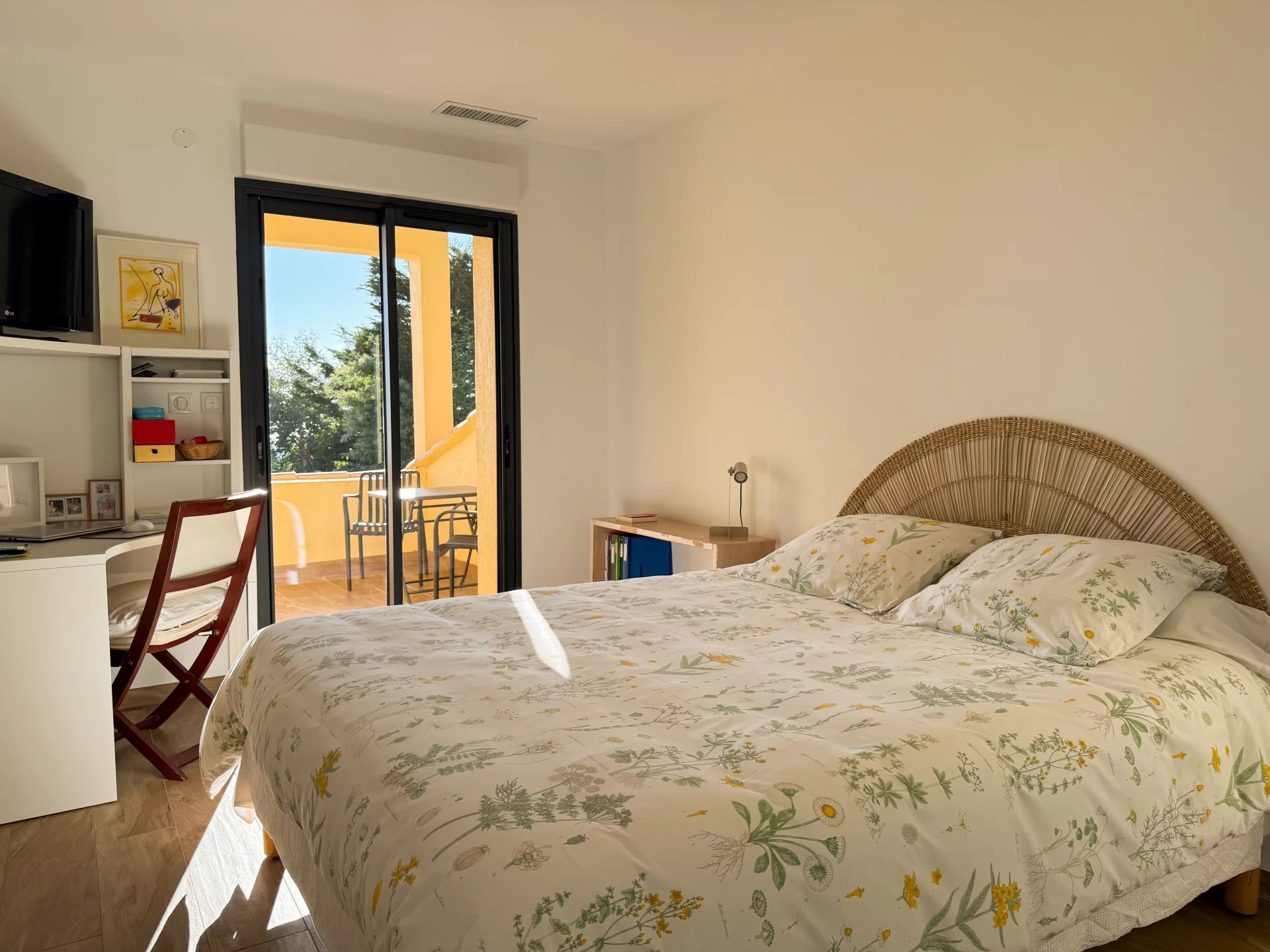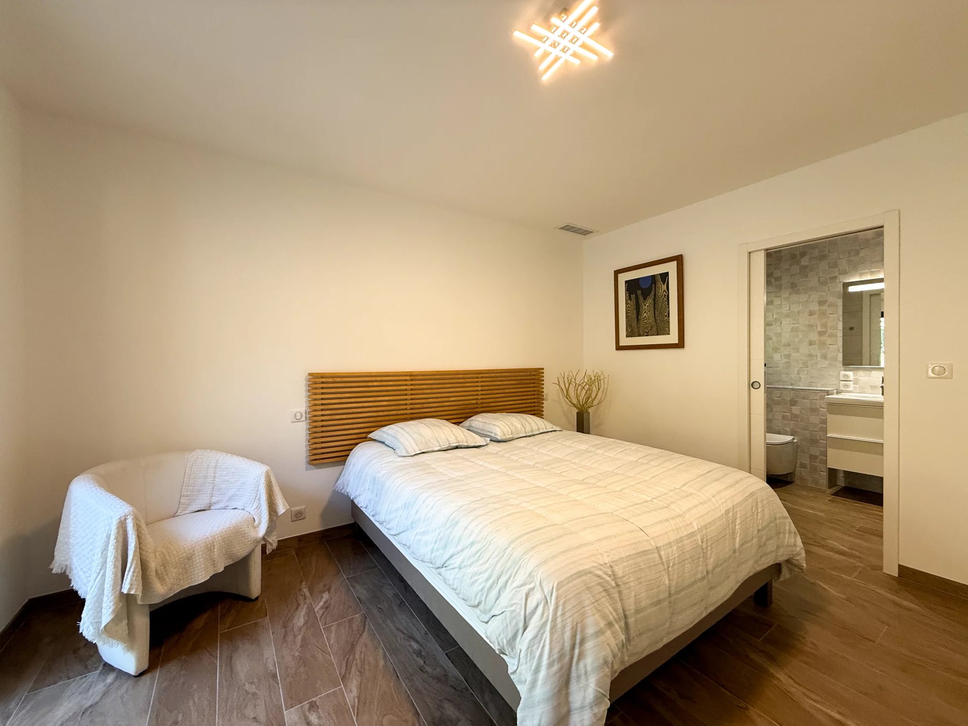 On the ground floor, the villa consists of a beautiful entrance, a spacious and bright living room with a library and office area, a large kitchen with a dining corner, and a laundry room. On the first floor, there are 4 large en-suite bedrooms, each opening onto a terrace or balcony.