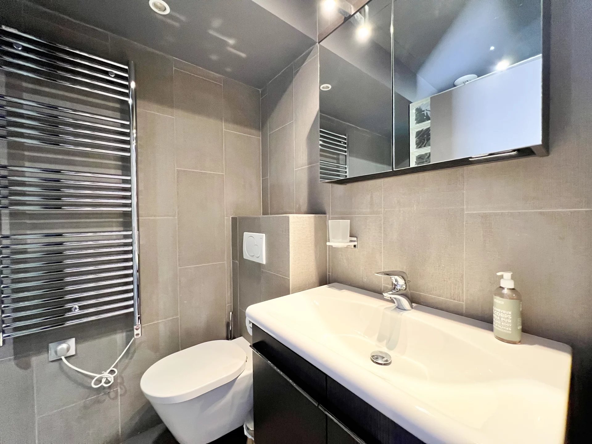 The living room consists of a living room with gas fireplace, an open kitchen and a dining area, all opening onto a sunny terrace offering different corners including a covered and functional summer kitchen.