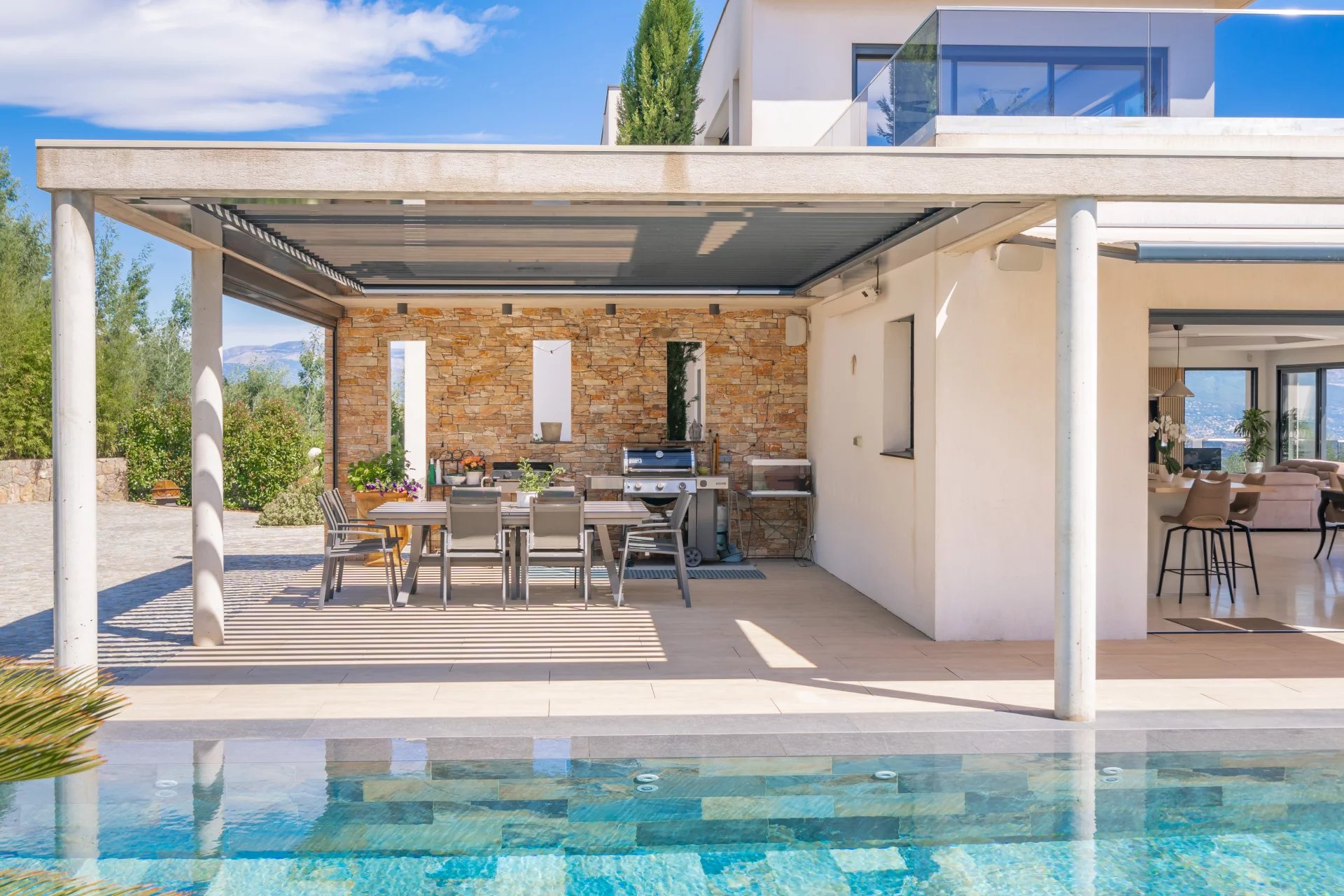 A high-quality property with luxurious amenities, just 20 minutes from Cannes, 15 minutes from the motorway, and 30 minutes from the airport, in a peaceful setting. This house is suitable for both a second home and a main residence. The view is fantastic and panoramic of the Italian peaks, the Bay of Cannes, the Lerins Islands, Corsica on a clear day and the hills of Tanneron.