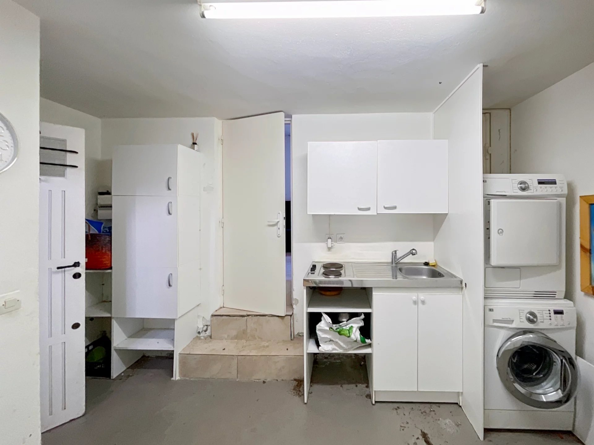 Additional amenities include the possibility of converting the top of the garage into a studio, with an existing kitchenette, a bedroom, and a shower room with WC.