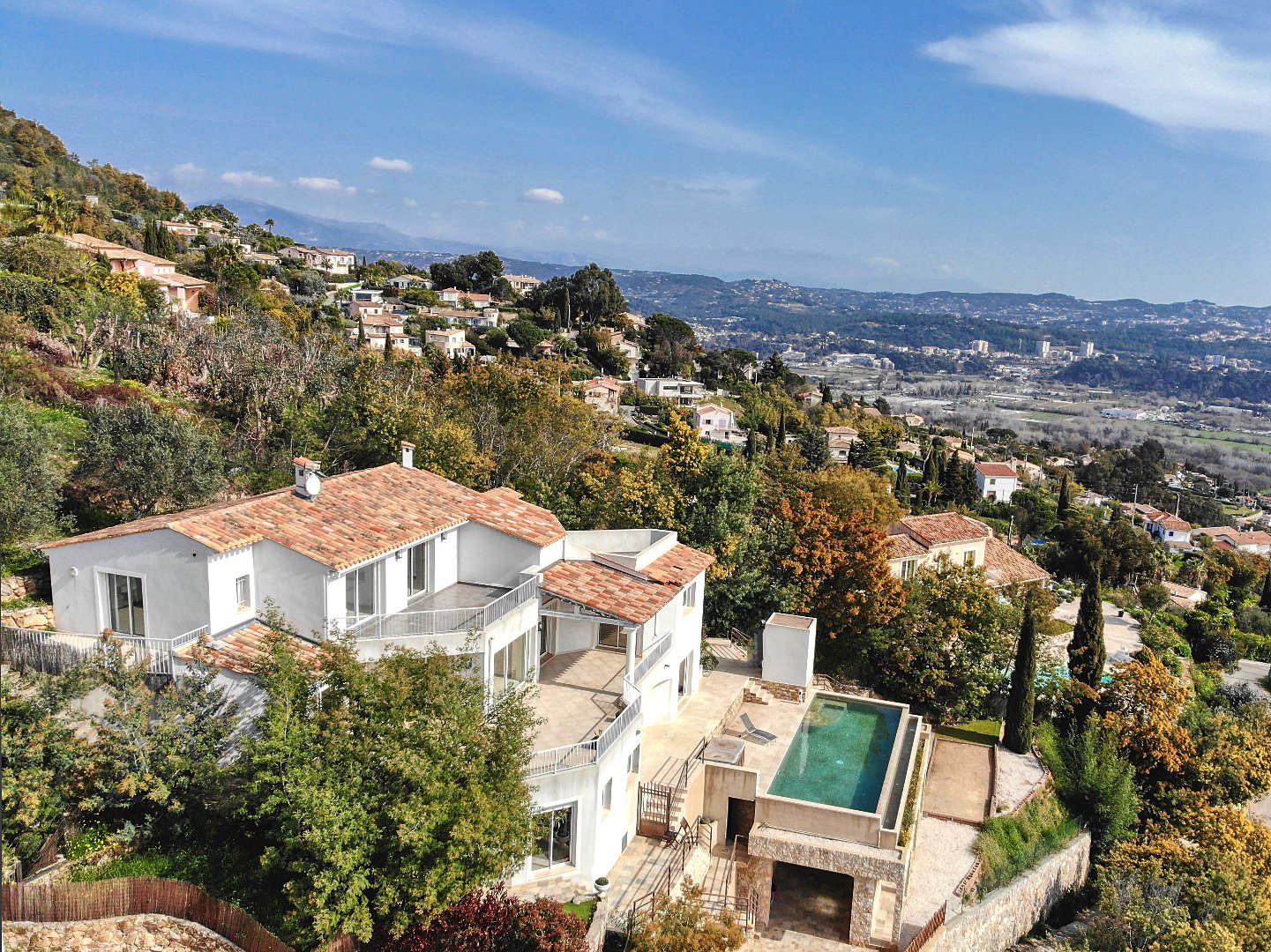 Remarkable modern villa on the heights of Mandelieu, in a green and very quiet residential area with breath-taking sea view.