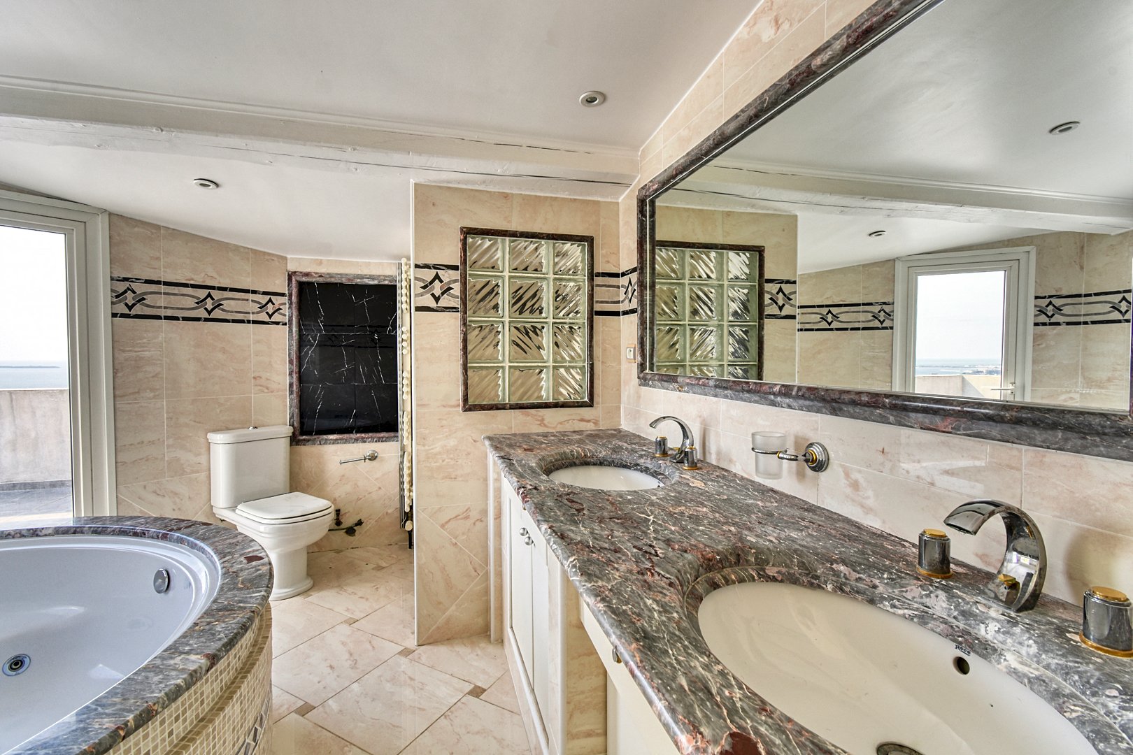 On its 220 m2 of living surface, spread over several levels, it accommodates: double living room with fireplace, open kitchen with bar and back kitchen, all opening onto a large terrace, office, laundry room, 3 en-suite bedrooms, guest’s apartment with living room, kitchen, 2 bedrooms and shower room WC, pool house, sauna/hammam, garage.