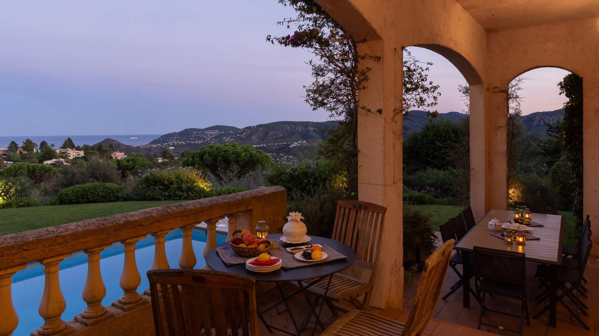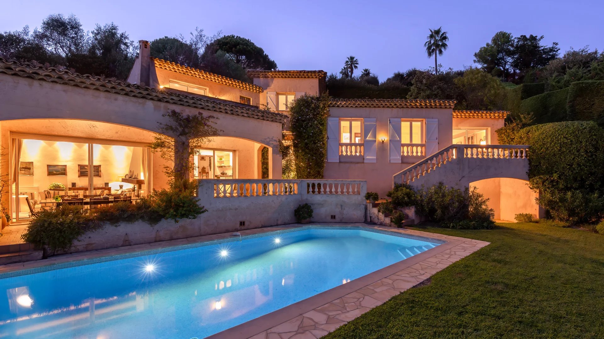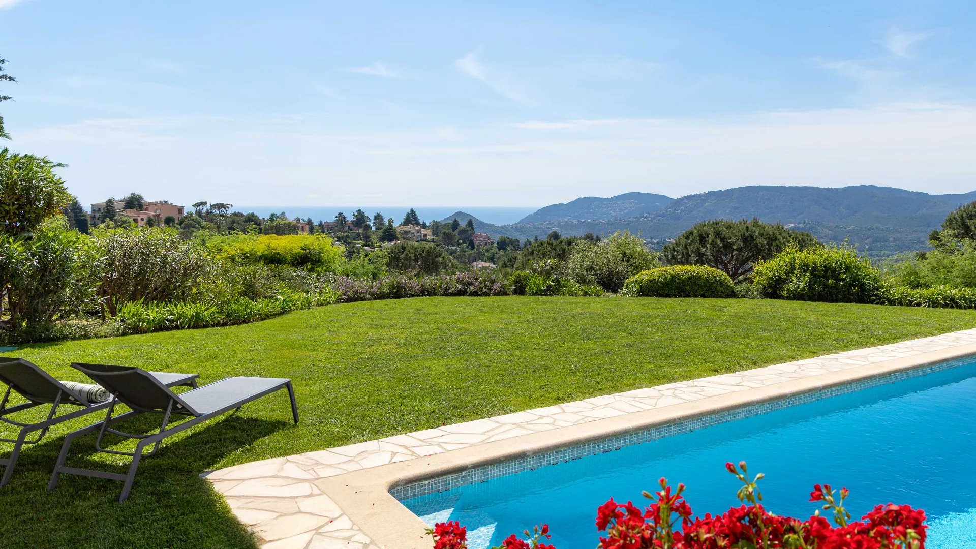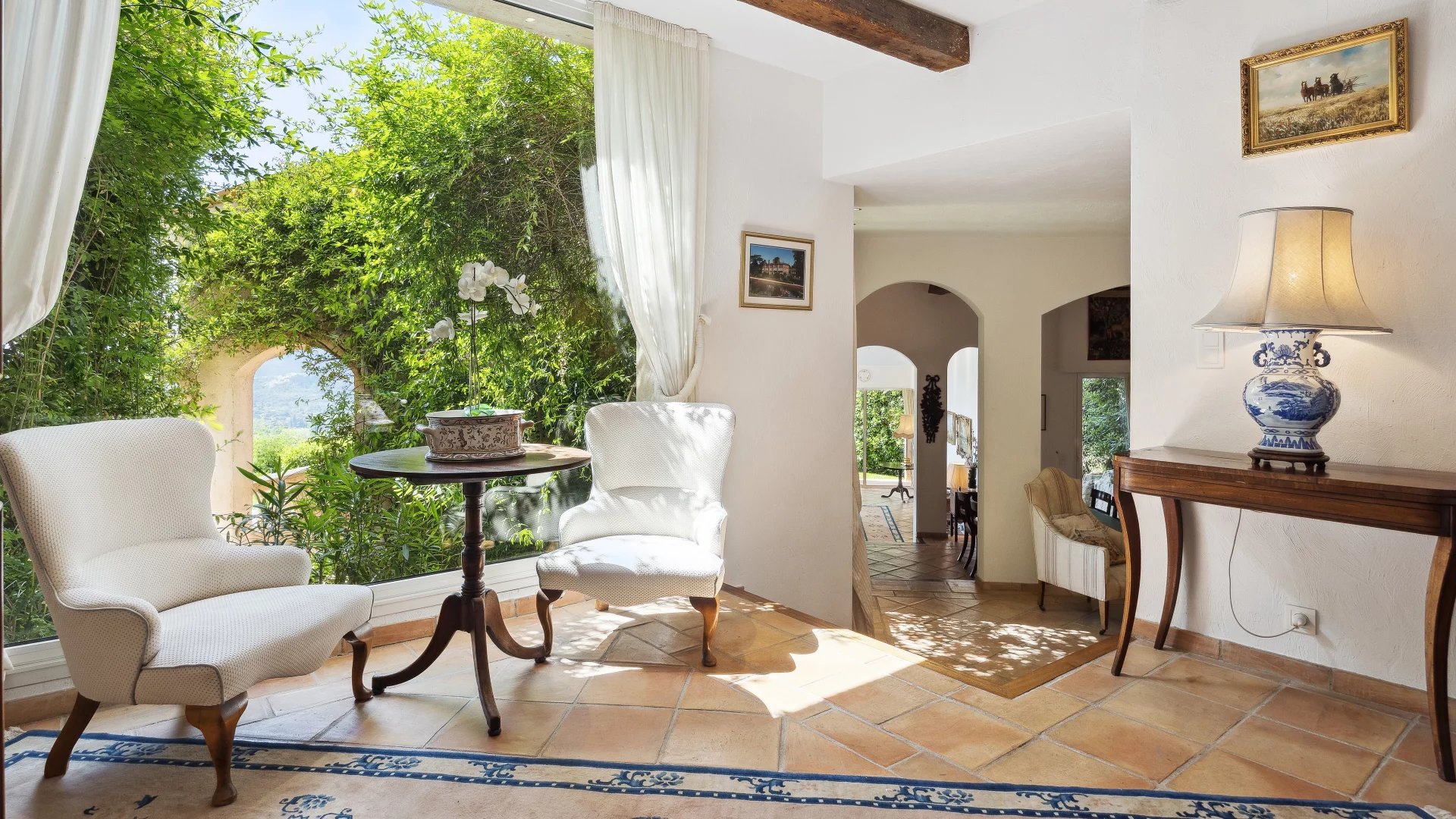 A true sanctuary, this home offers tranquility, authenticity, spectacular views of the Mediterranean Sea, the majestic Esterel mountains, and golf courses, all just minutes from Cannes and the stunning natural beauty of the Esterel massif.