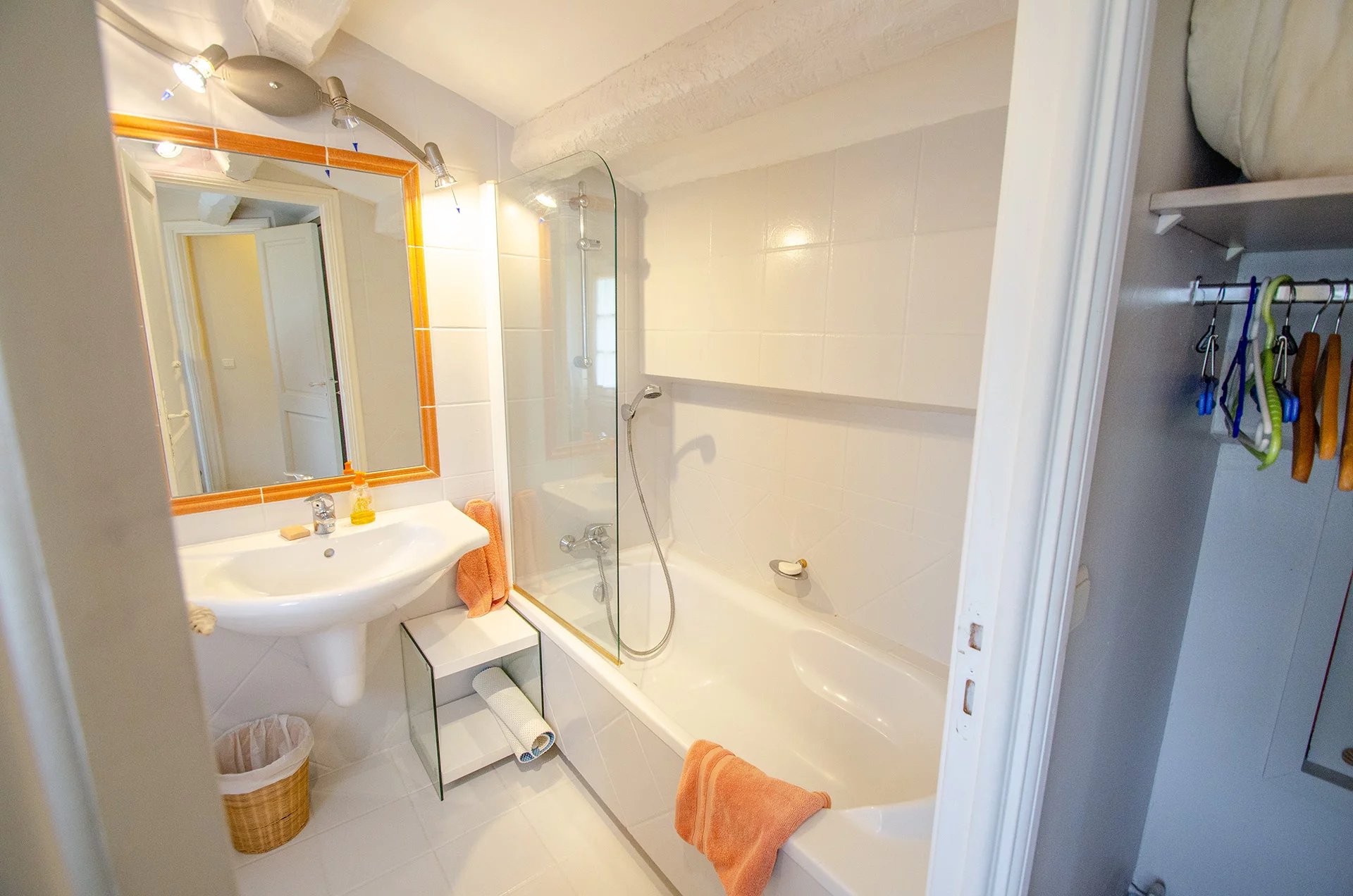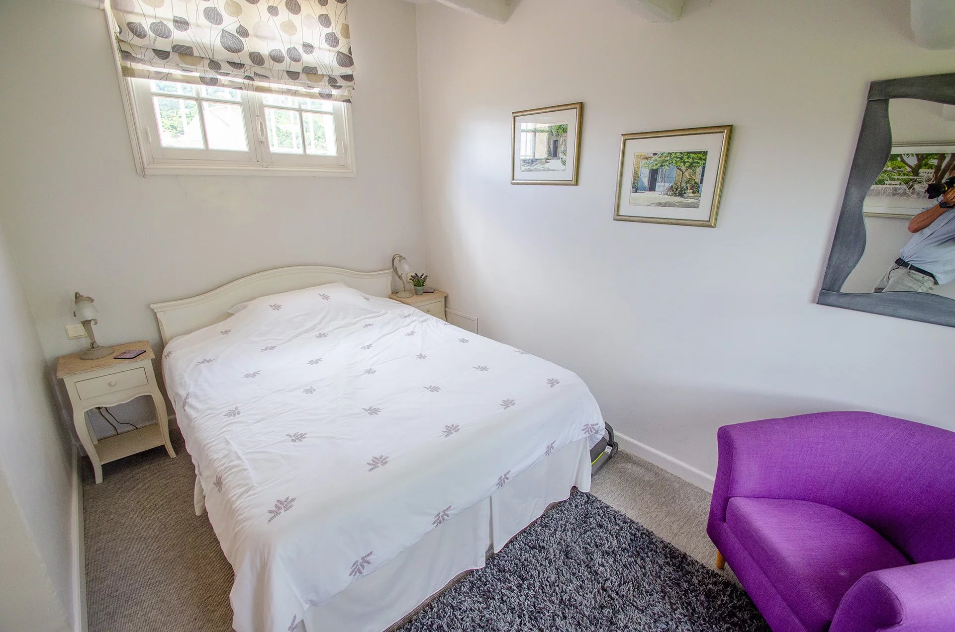 The first floor is a private retreat with a 10 m2 bedroom and a 4 m2 bathroom, perfect for guests or a home office.