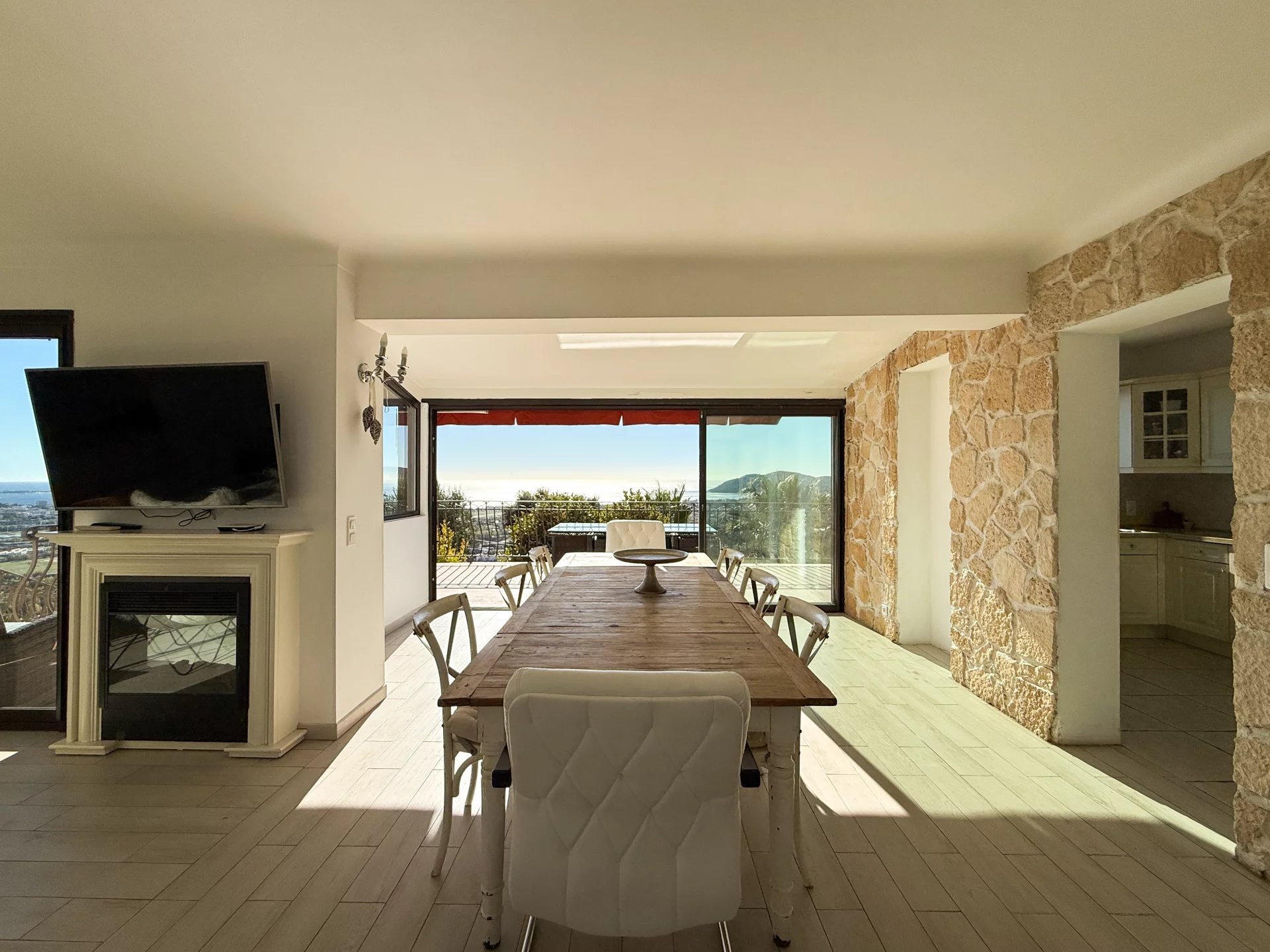 The living area consists of a bright living and dining room opening onto a beautiful terrace offering panoramic views.