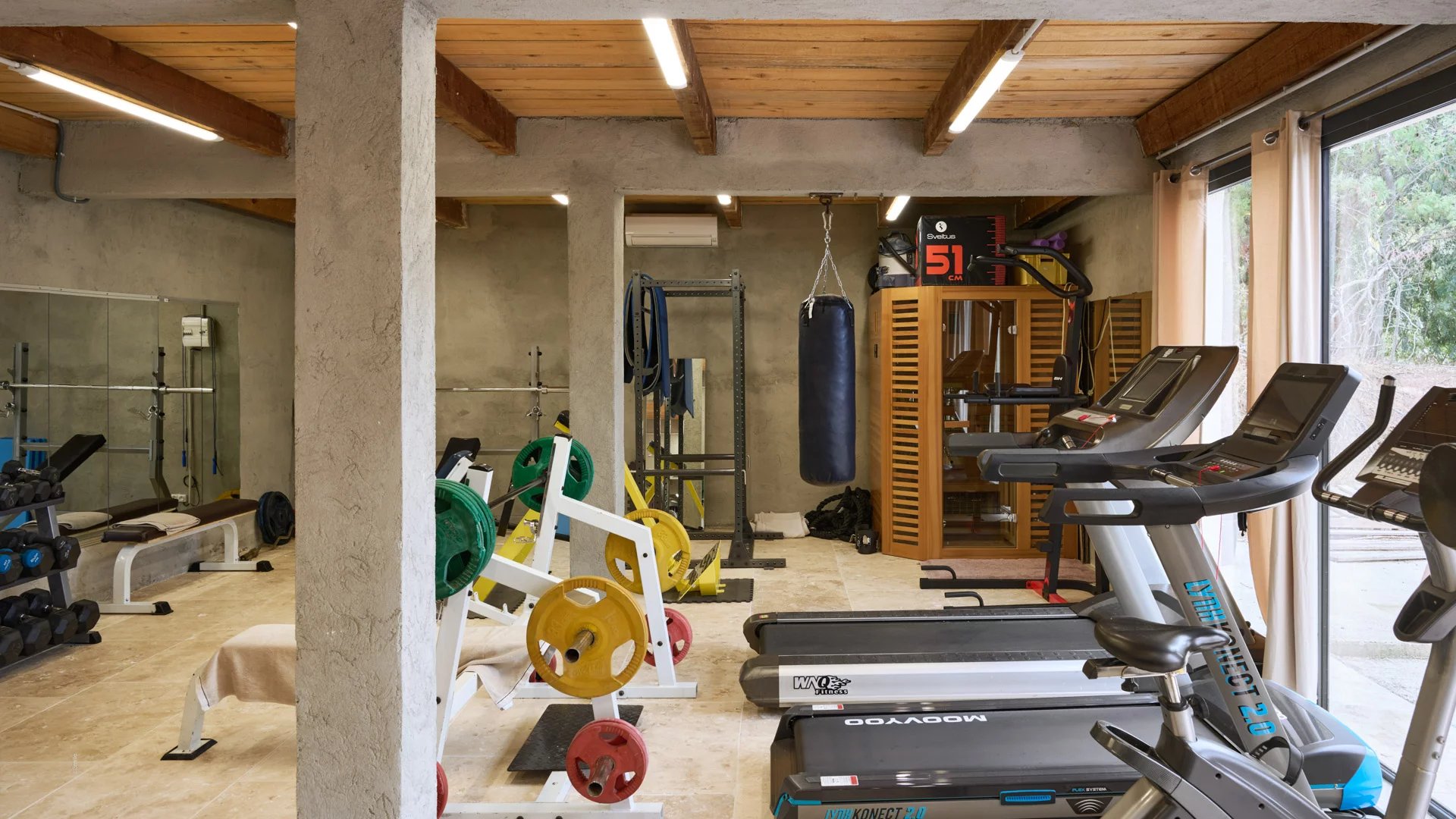 – A separate fitness room.