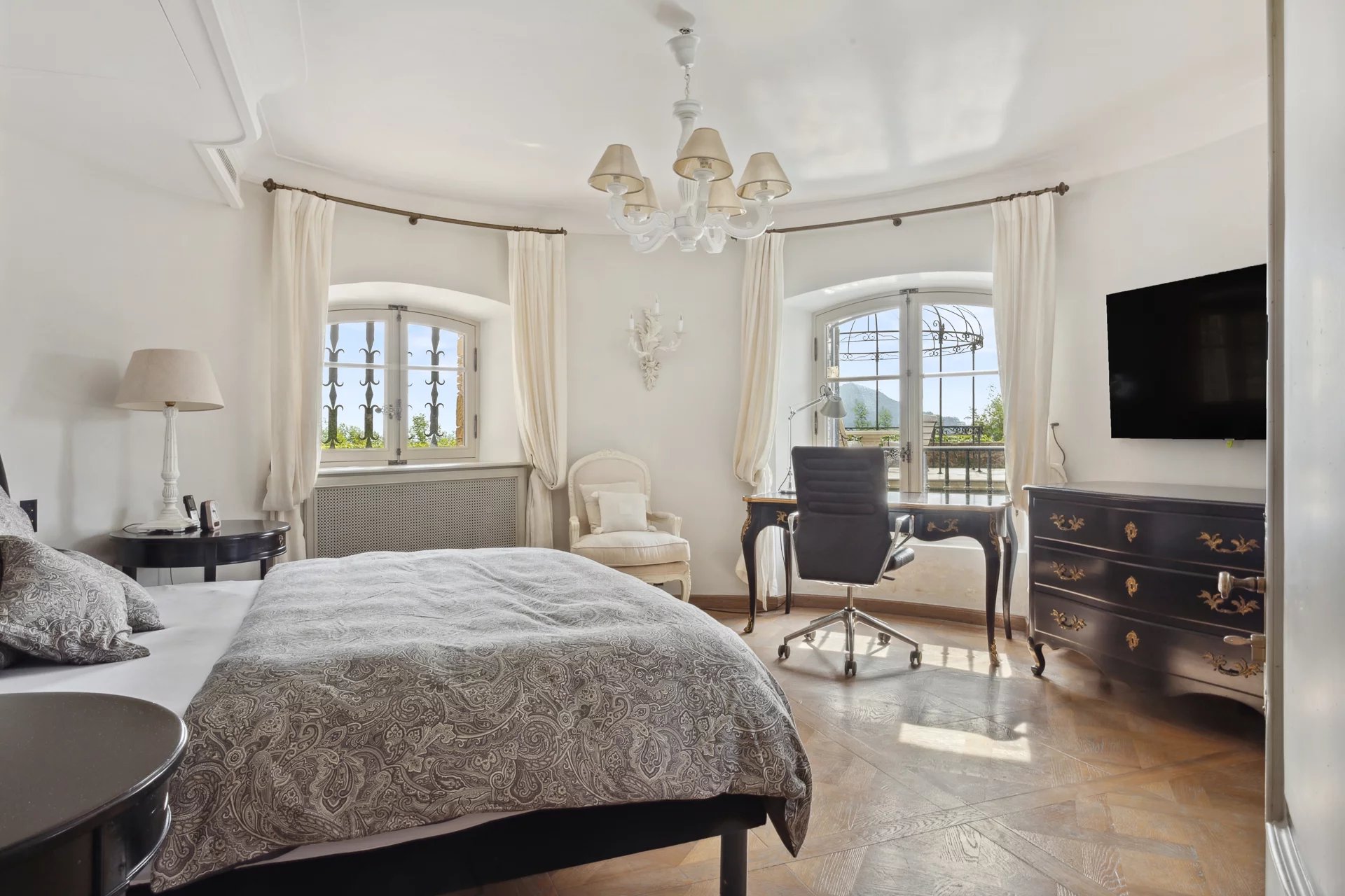 Out of sight and in a dominant position, at the end of a cul-de-sac in a very residential area, this recently renovated family property par excellence offers sea views over Cannes, the Lerins islands and L’Esterel.