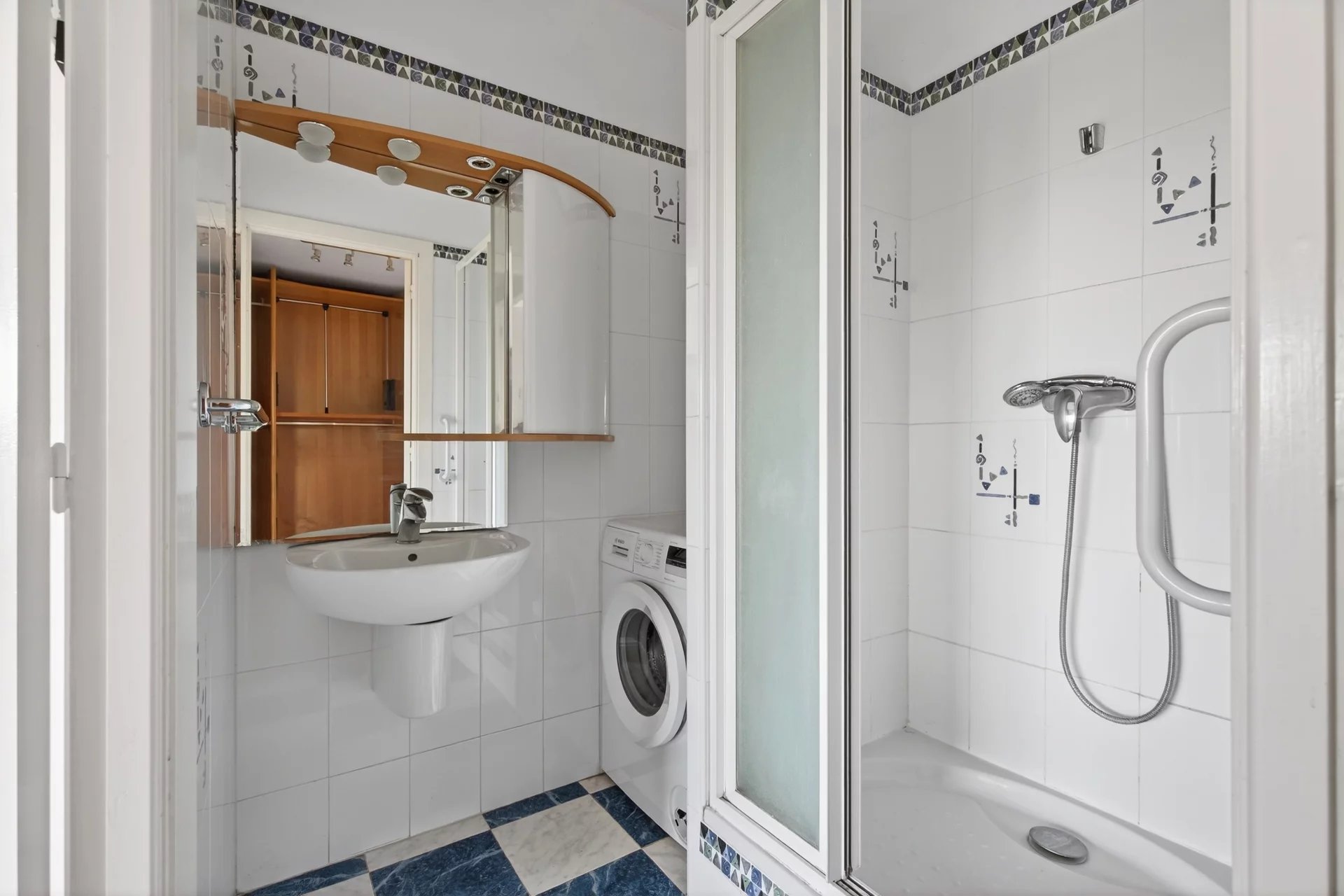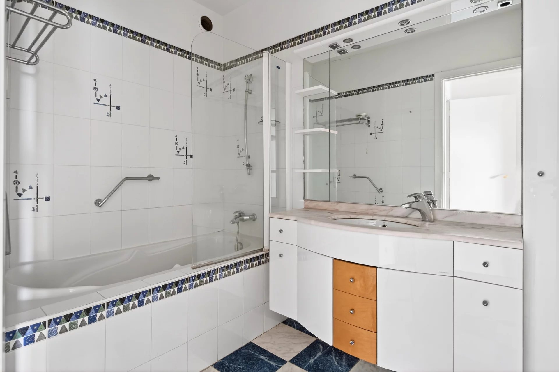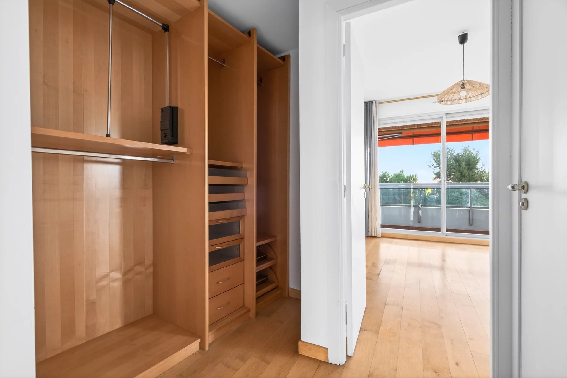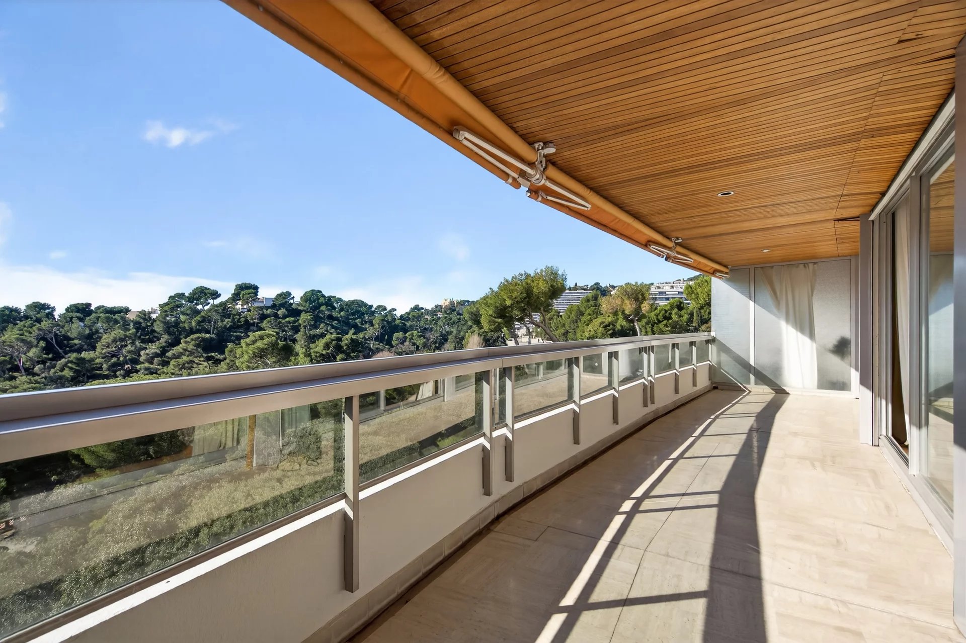 Dual-aspect and south-facing, the apartment benefits from outstanding sunlight throughout the day. The fully equipped independent kitchen opens onto a second terrace and also offers strong potential for reconfiguration, including the possibility of creating a third bedroom and opening the kitchen onto the living area for a more contemporary reception space.