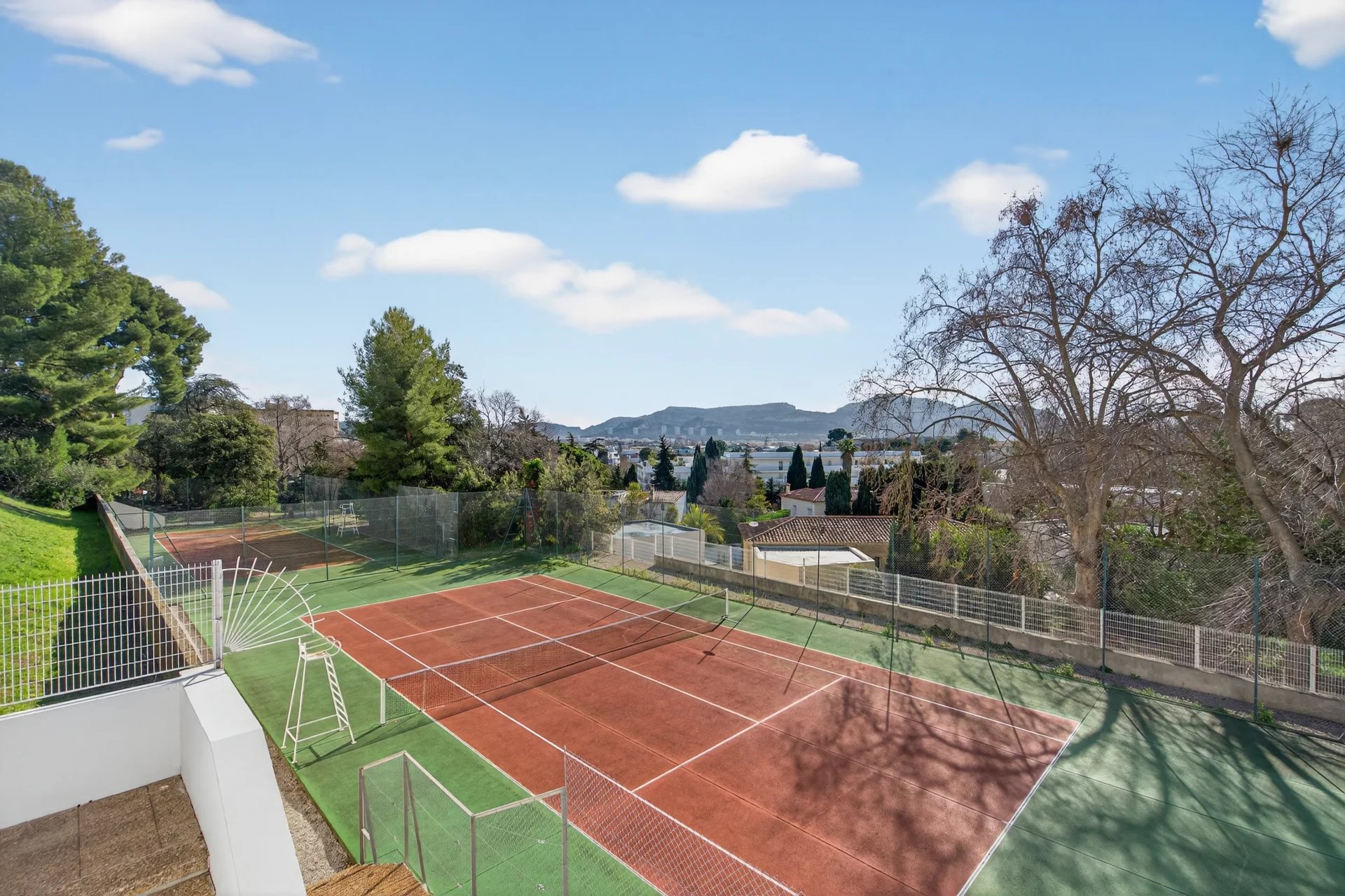 The 24/7 secure residence offers rare and highly sought-after amenities, including a private swimming pool, tennis courts, and an on-site restaurant, creating a privileged lifestyle combining comfort, security, and elegance.