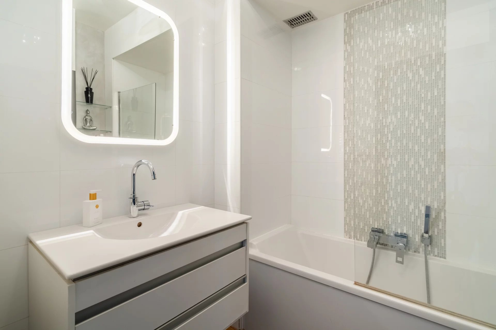 The apartment offers 125 m2 of elegant living space, enhanced by a spectacular private rooftop terrace of 140 m2 with sea glimpse views — the perfect setting for entertaining or relaxing in complete privacy.