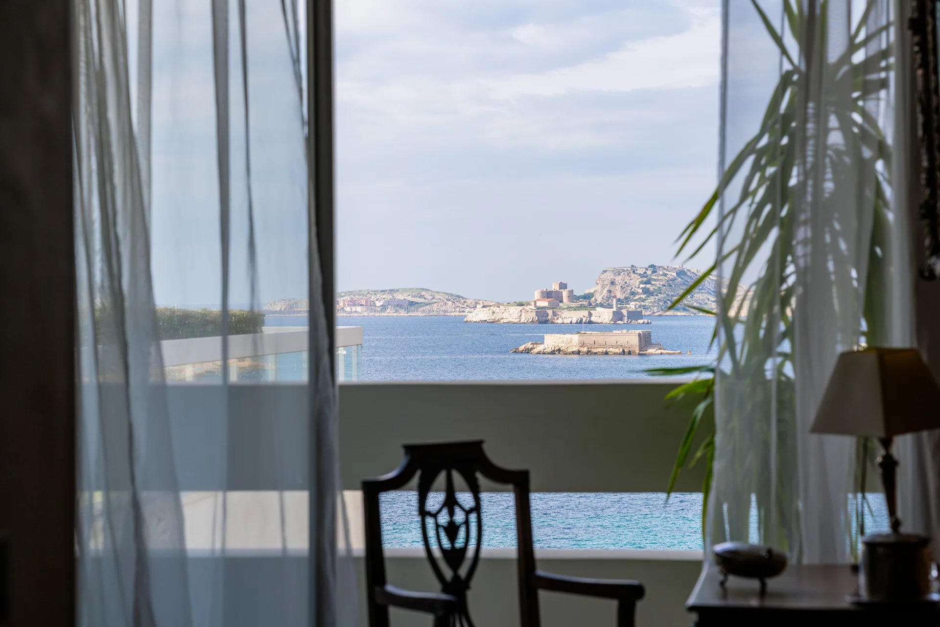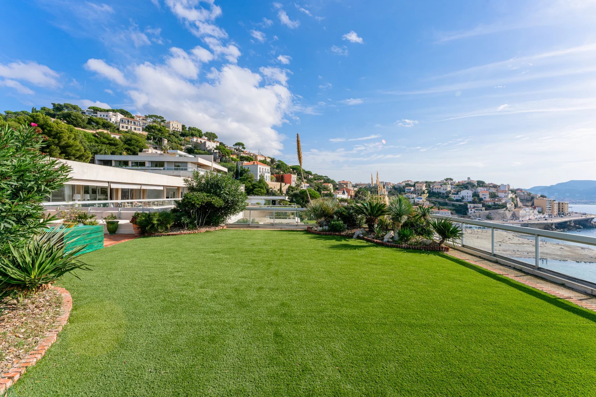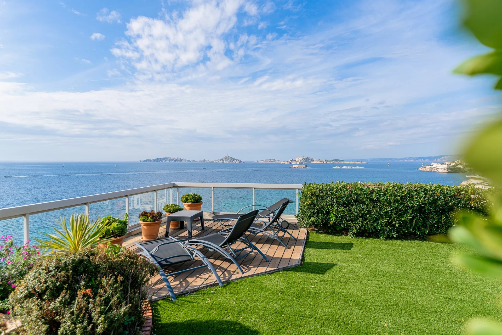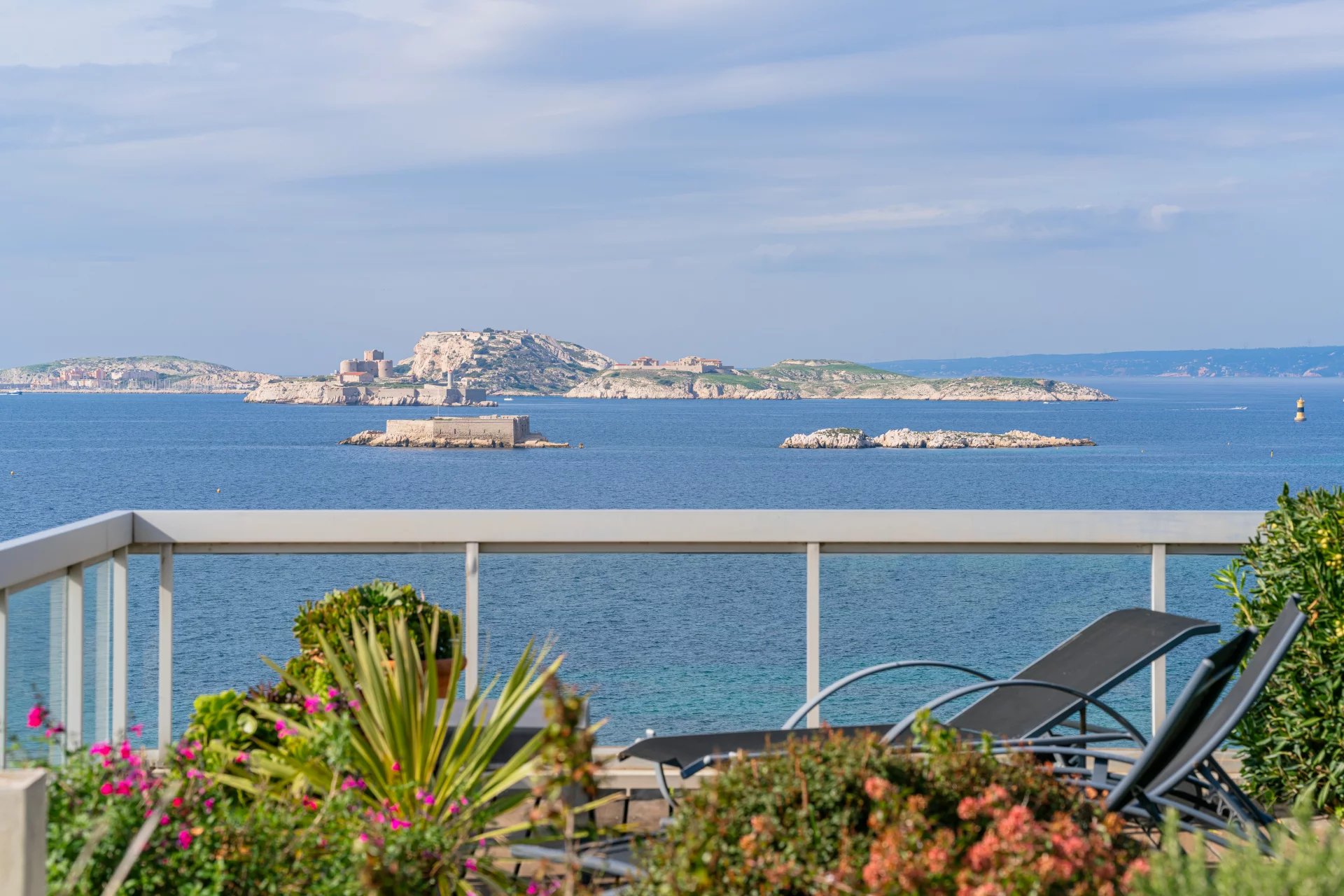 Accommodation featuring a spacious living room with large bay windows overlooking the sea and the harbor of Marseille, extended by a suspended garden of approximately 500 m2.