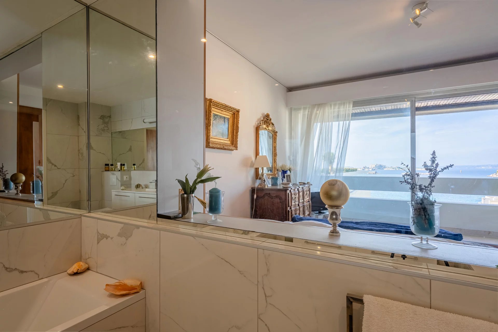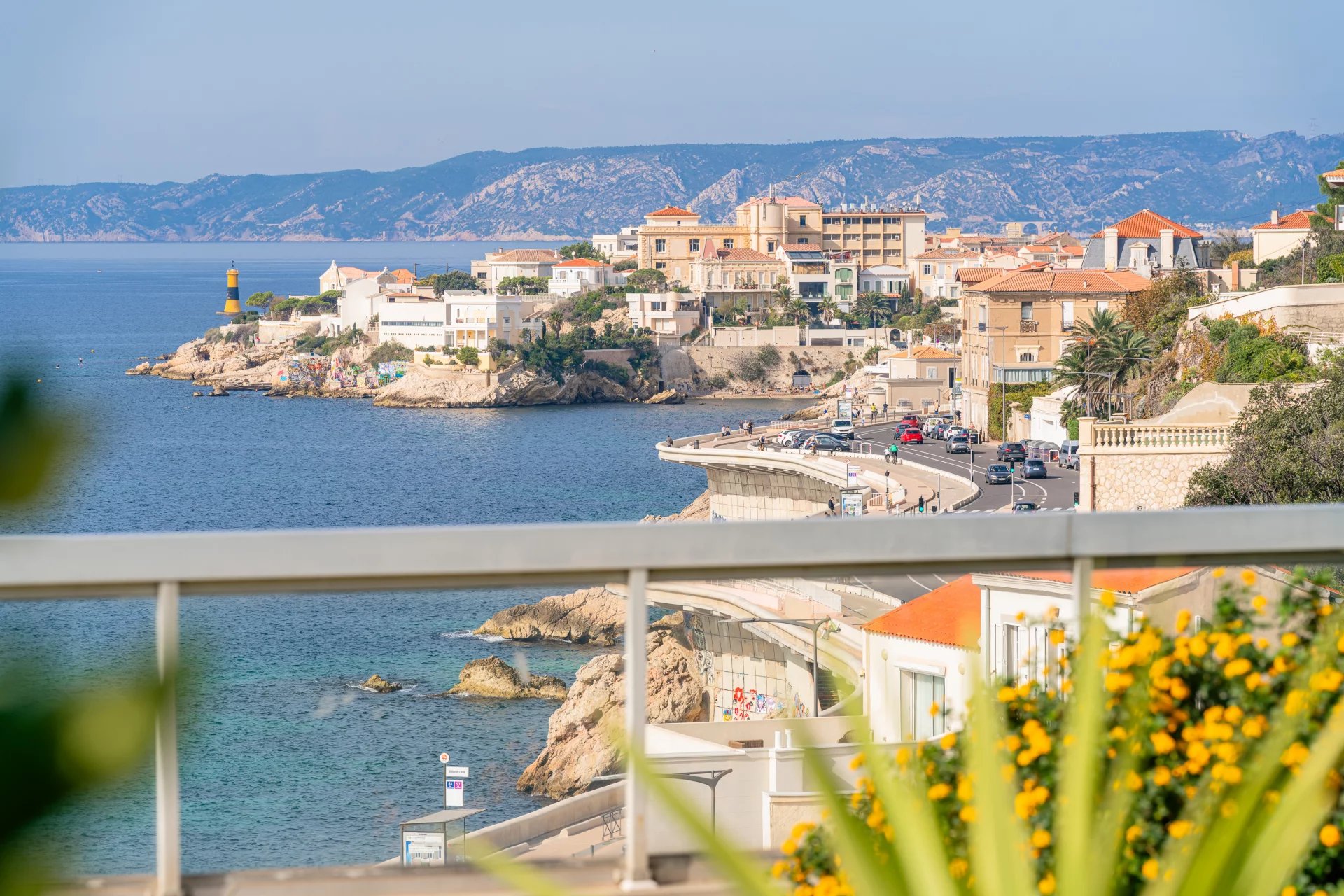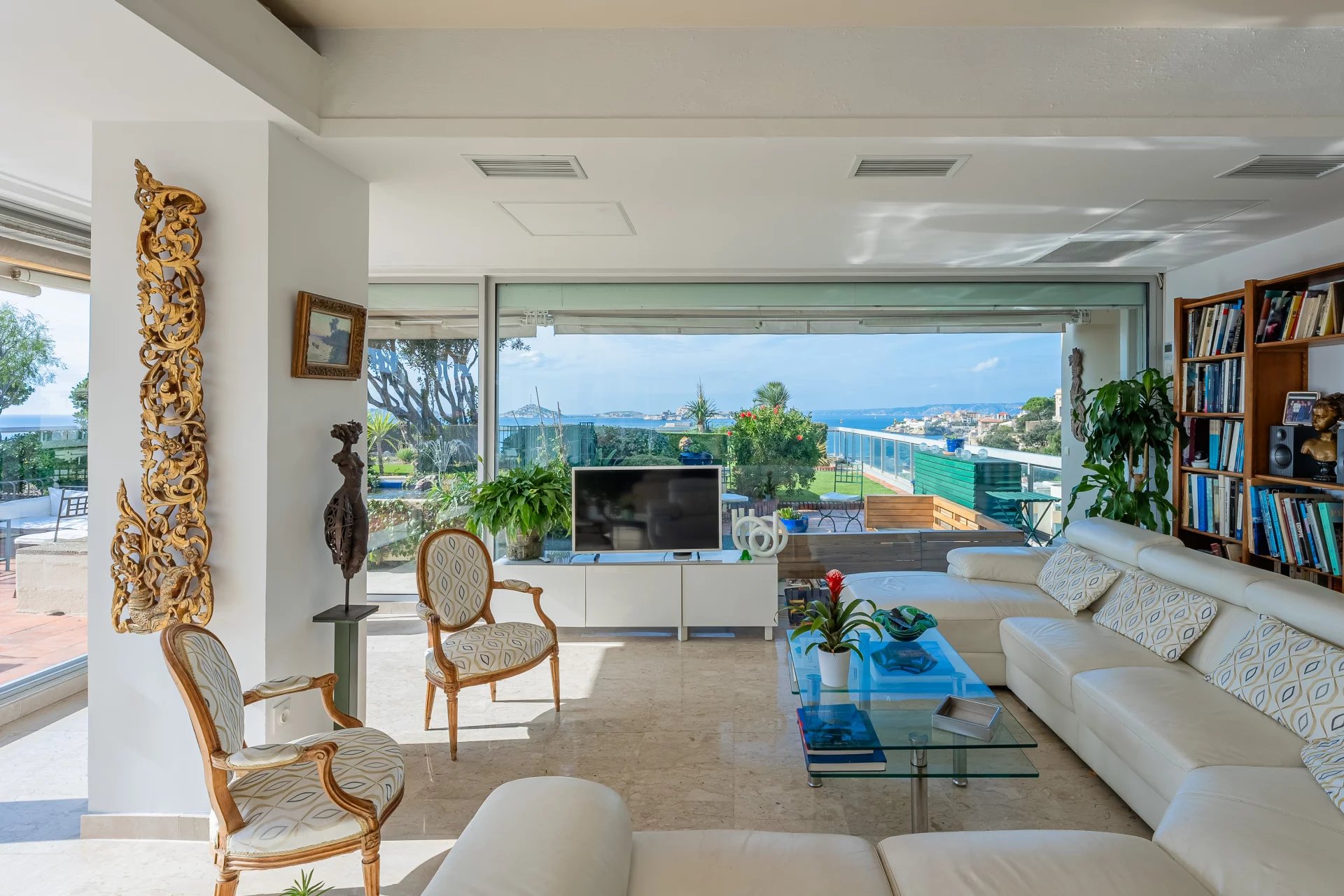 Accommodation featuring a spacious living room with large bay windows overlooking the sea and the harbor of Marseille, extended by a suspended garden of approximately 500 m2.