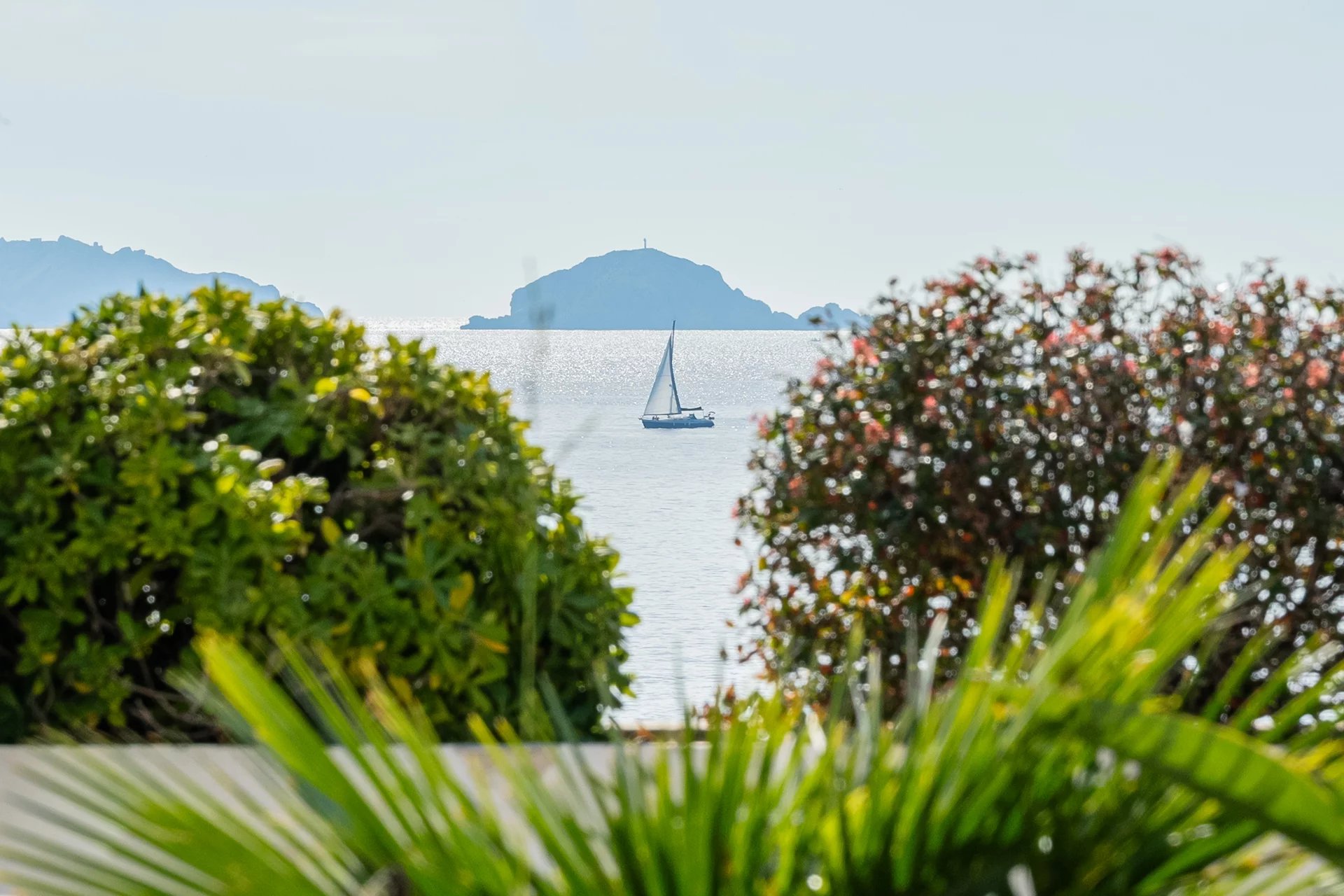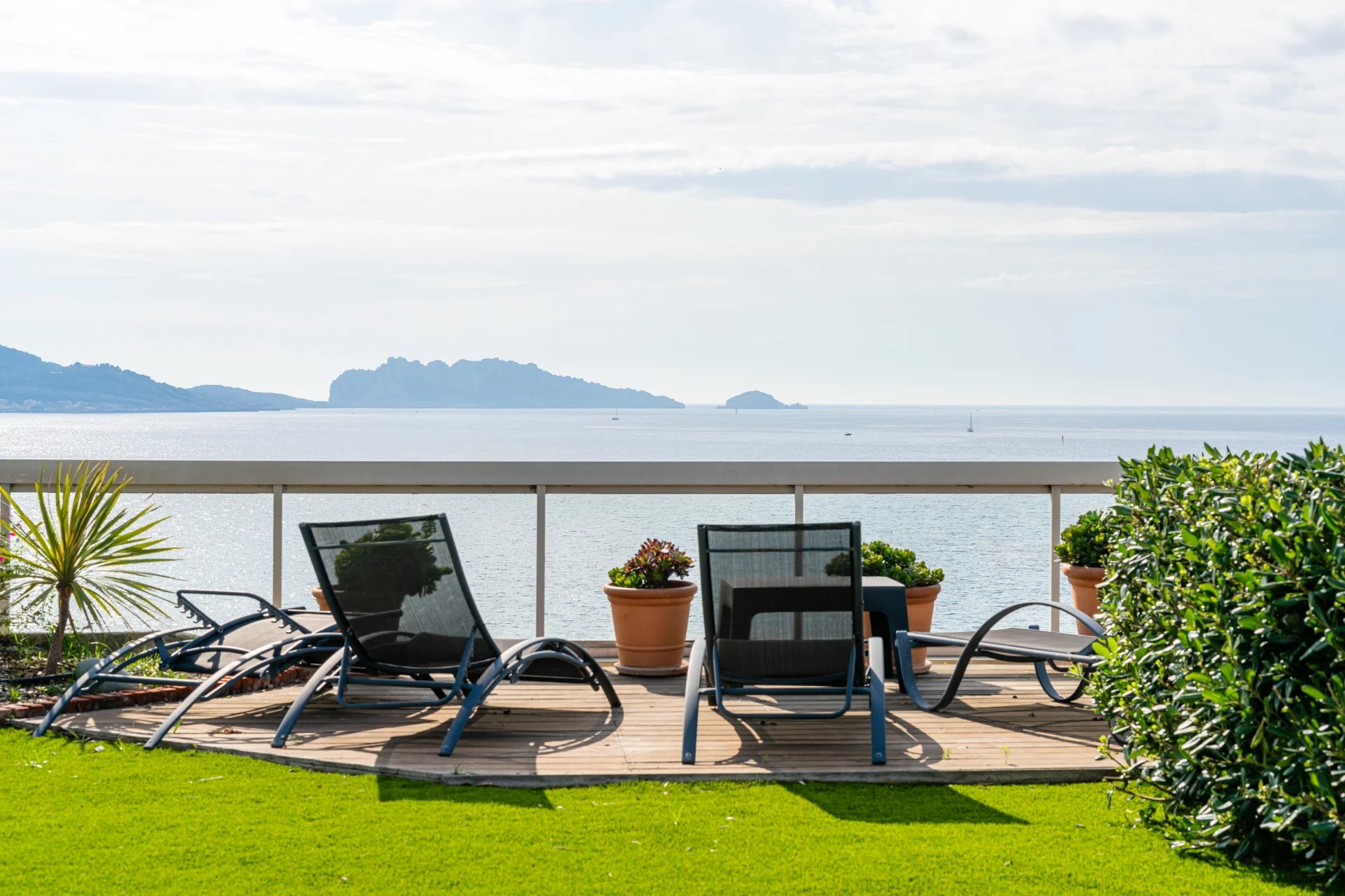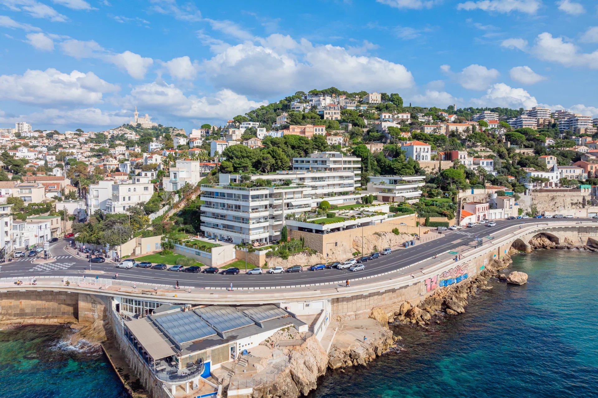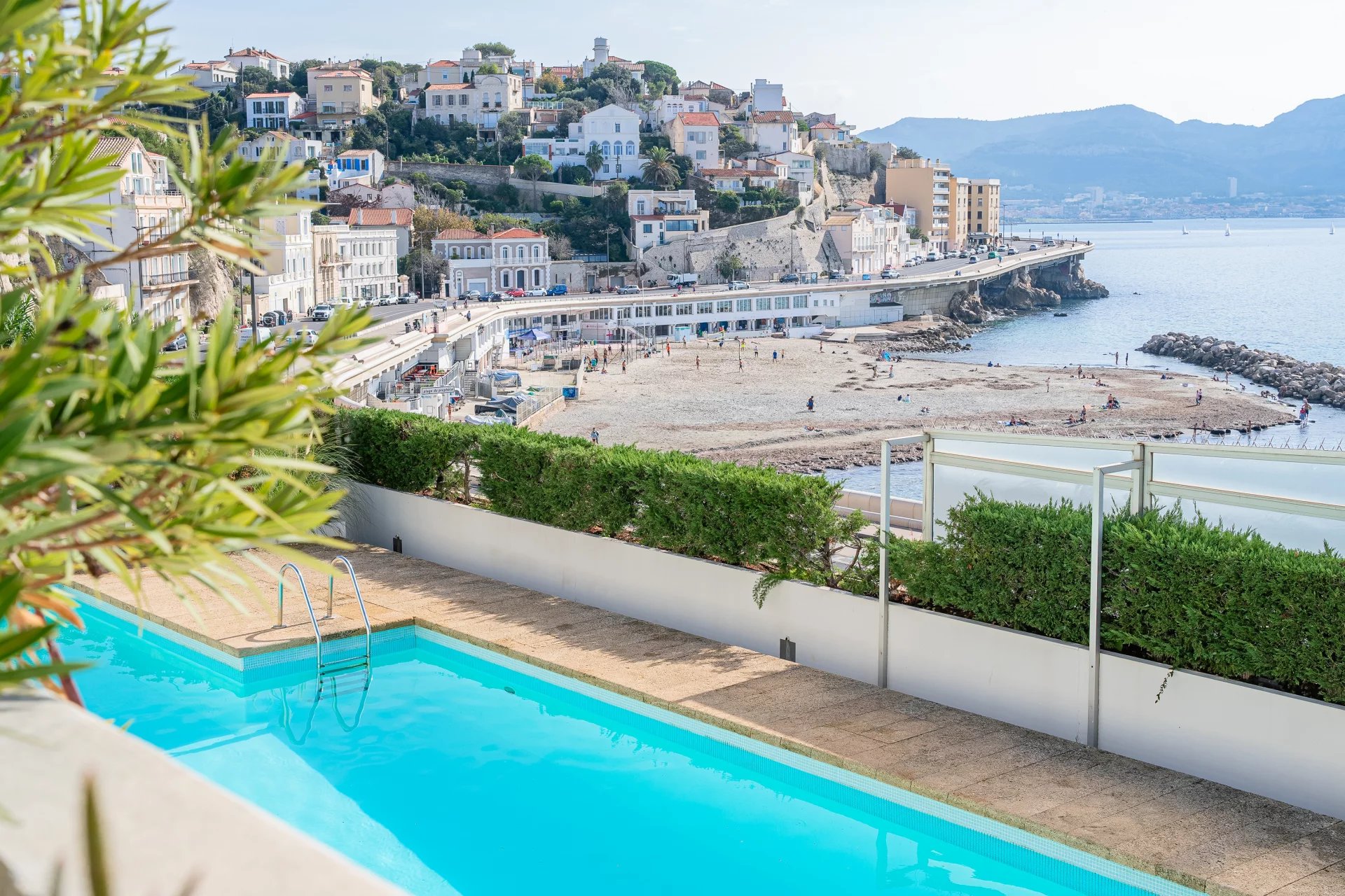 Accommodation featuring a spacious living room with large bay windows overlooking the sea and the harbor of Marseille, extended by a suspended garden of approximately 500 m2.