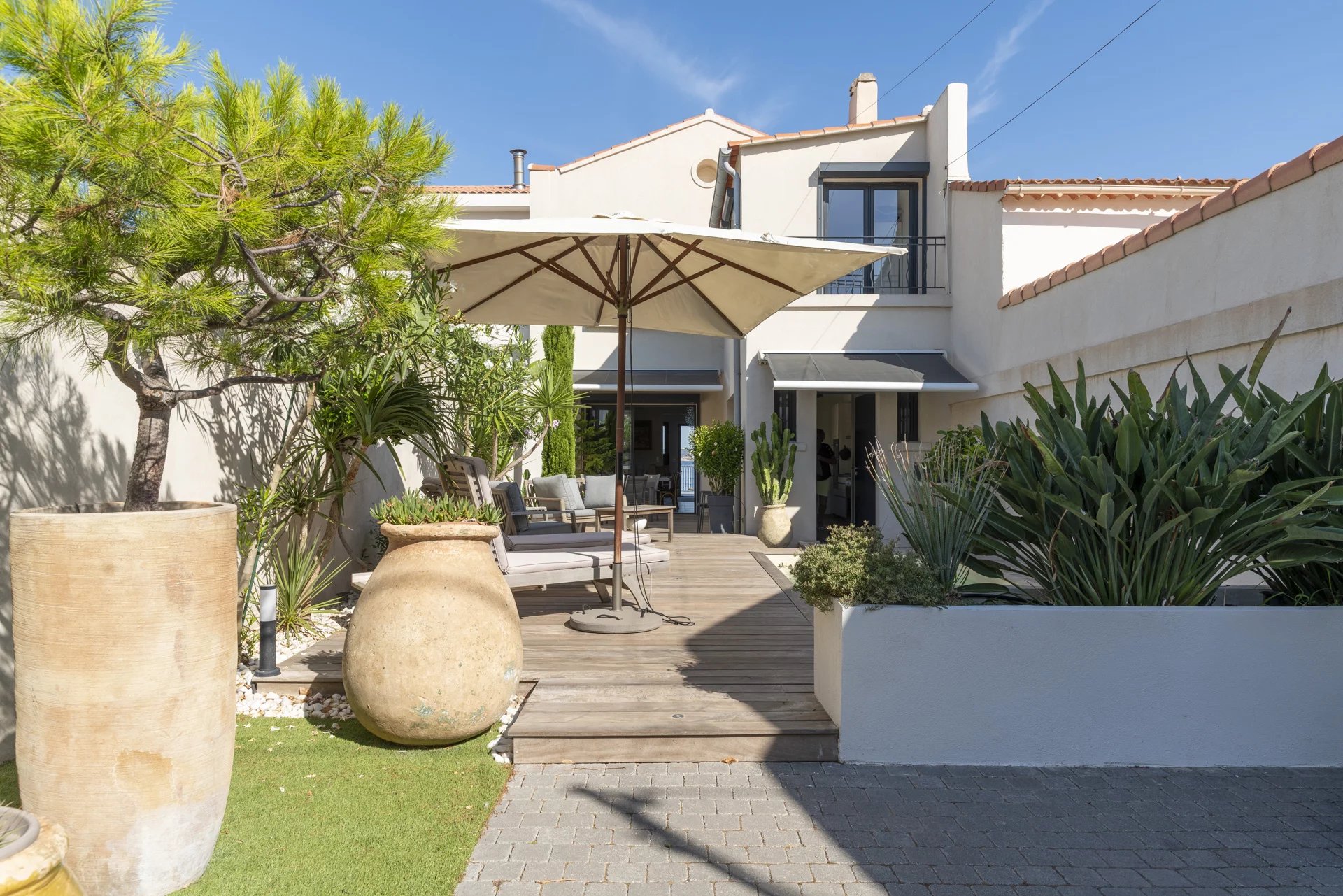 In an absolutely exceptional setting, this seafront home with direct access to a private cove embodies discreet luxury and Mediterranean elegance. Just steps from local shops and the beach, this 130 m2 villa offers a rare lifestyle where every detail has been carefully designed to enhance the sea view and natural light.