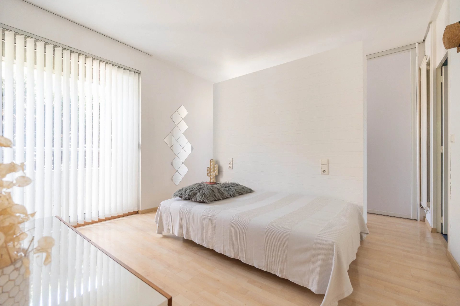 Nestled in the heart of the village core of Montolivet, within a peaceful residential enclave close to shops, schools, and public transport, this exceptional architect-designed villa by Andre Stern offers 180 m2 of living space surrounded by a lush 400 m2 garden with swimming pool.