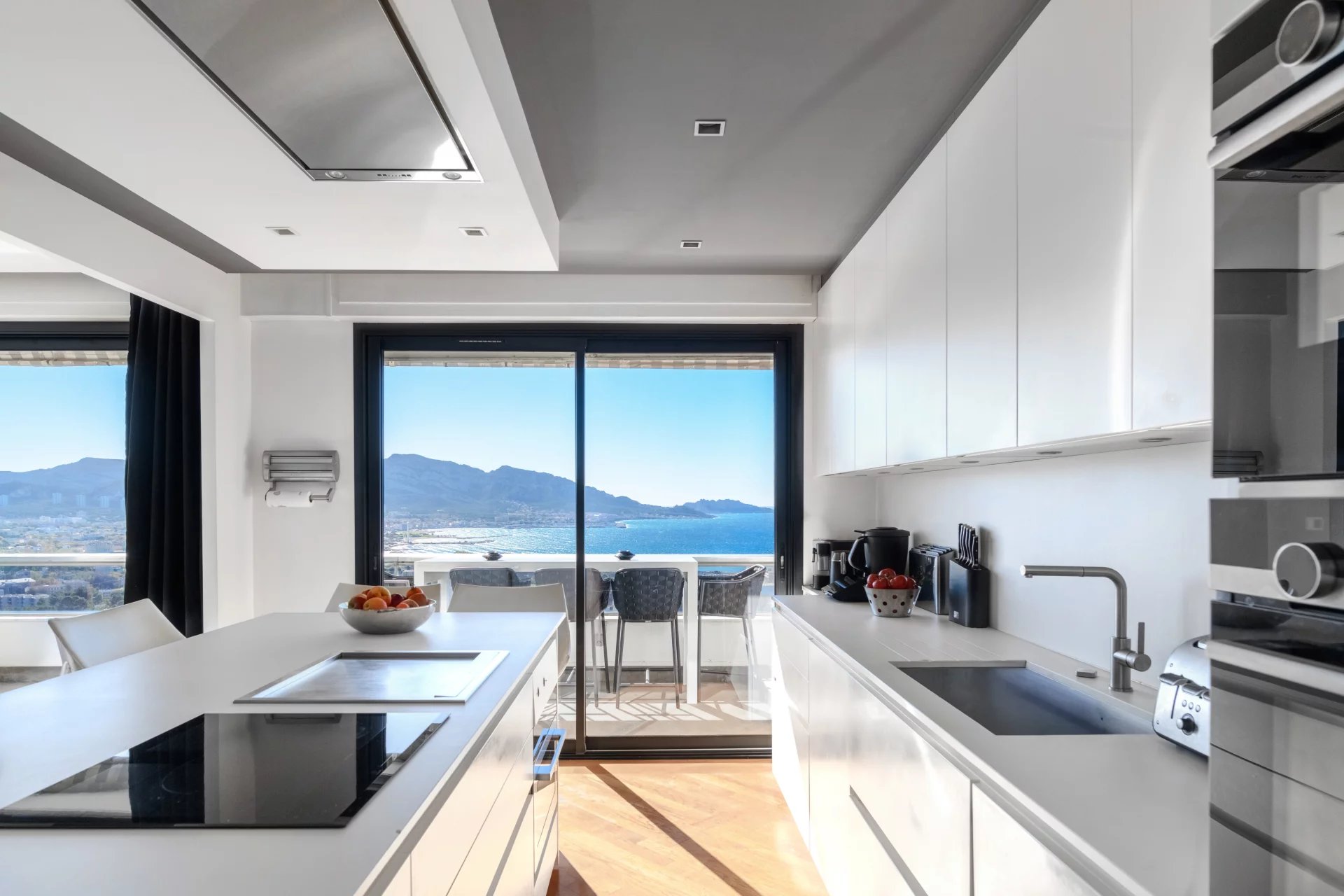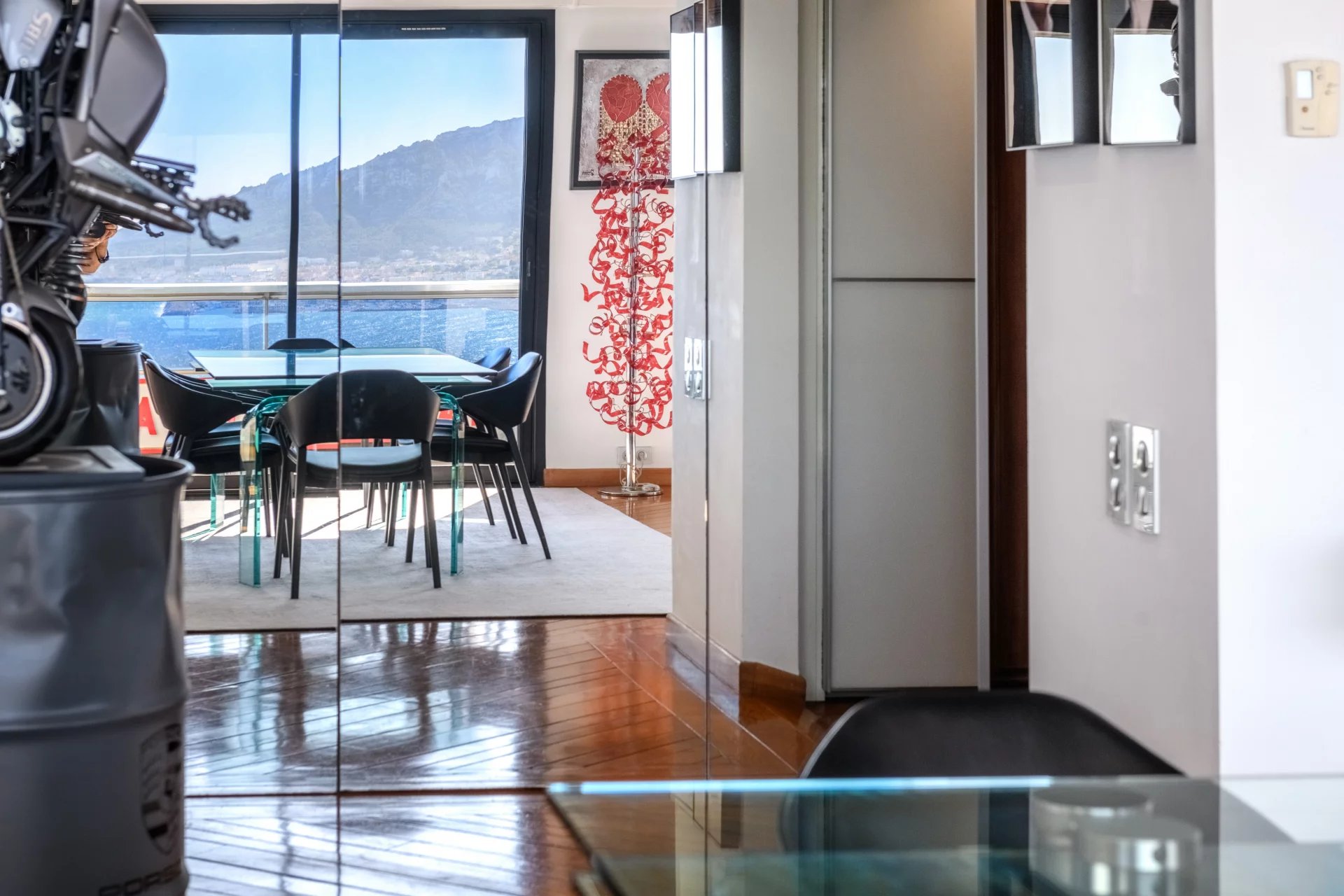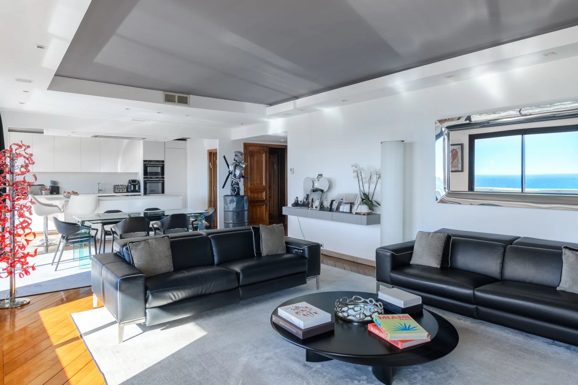 The expansive 65 m2 living and reception area, flooded with natural light, opens onto a 35 m2 south-facing terrace with 180 degree sea views. Generous volumes, custom finishes, and high-quality materials underscore the apartment’s rare refinement and elegance.