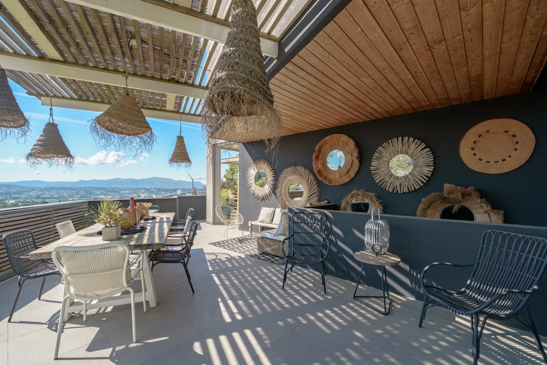 Designed to harmonize modern comfort with natural beauty, the property enjoys uninterrupted views over the surrounding hills, delivering a rare sense of serenity and openness just moments from the city.