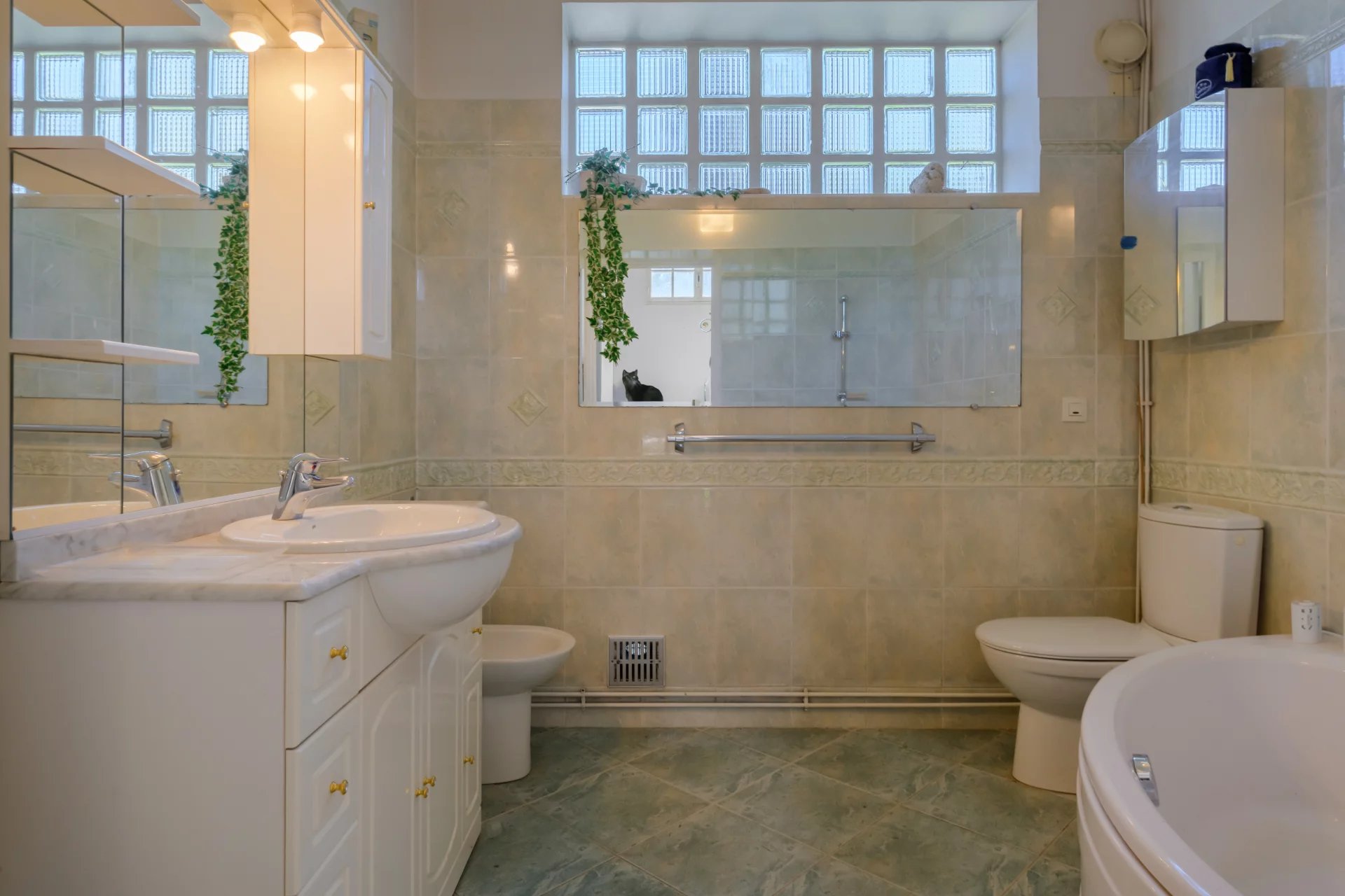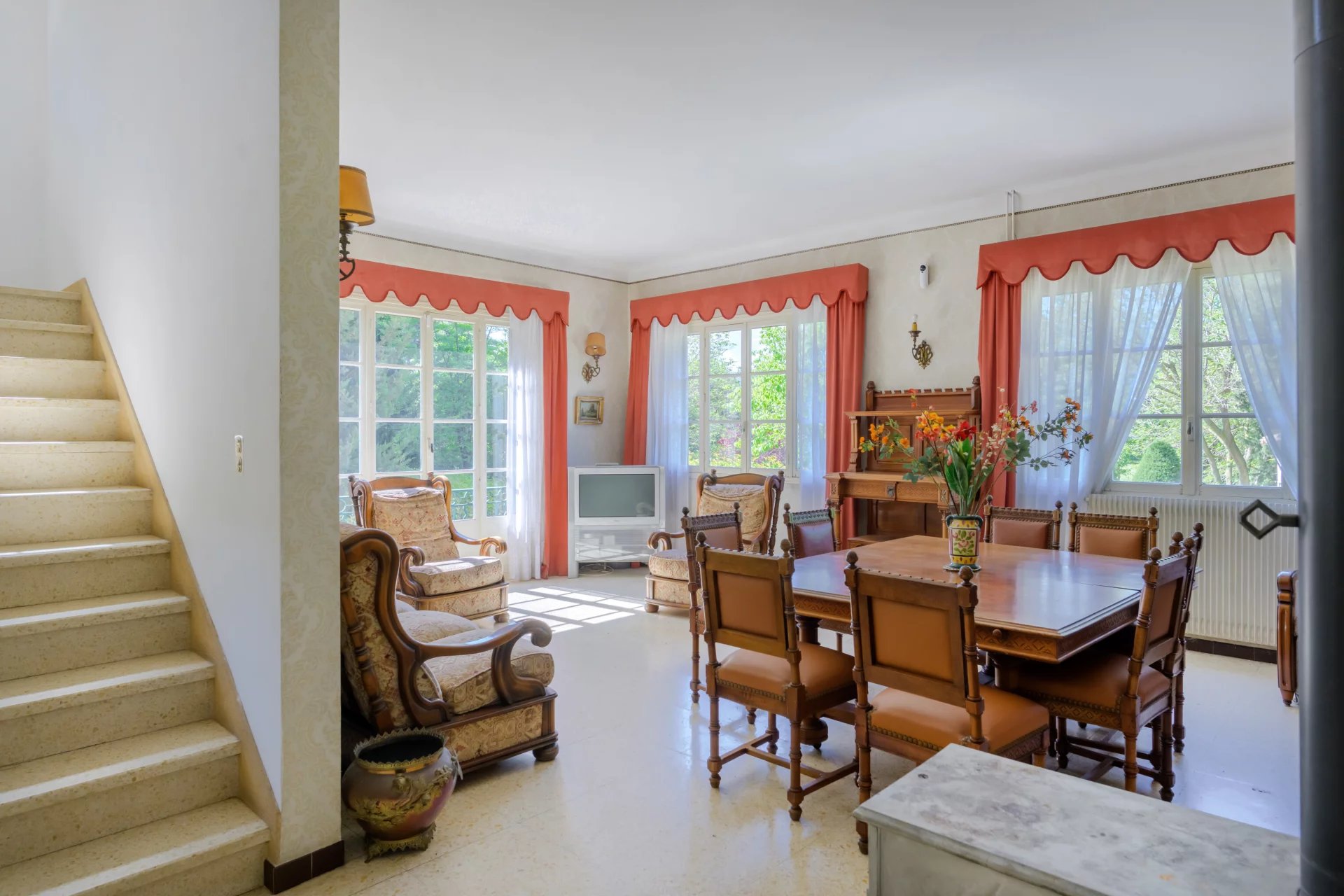 – Approximately 183 m2 of living space (242 m2 total floor area) across two connected yet independent residences: the historic early 20th-century former stables and a 1960’s extension.