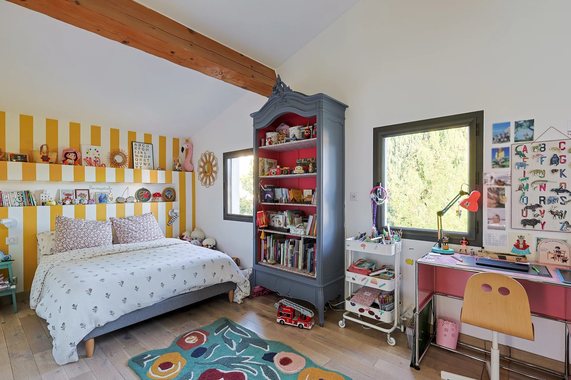 From the moment you enter, you will be charmed by the generous volumes and the abundant natural light throughout. The house offers a spacious living area with impeccable finishes, including an open-plan kitchen. It features 4 bedrooms, each with its own private shower room, including two on the ground floor, as well as an office.