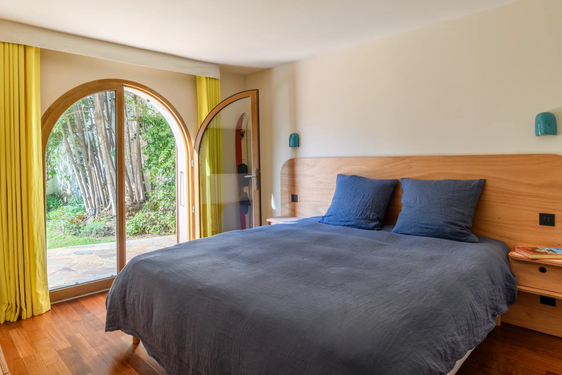 The garden level is dedicated to relaxation and well-being. A heated indoor/outdoor swimming pool opens onto a beautifully landscaped garden planted with Mediterranean species—oleanders, olive trees, bougainvillea, and citrus trees—creating a serene and preserved environment. This level also includes an additional suite with a shower room and garden terrace, a fully equipped independent studio, a laundry room, and a wine cellar.