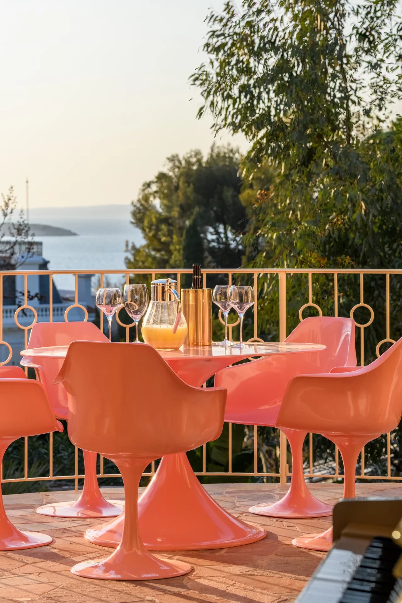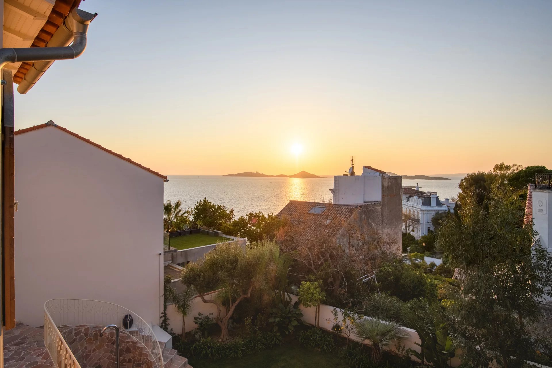 This confidential property has been meticulously crafted, where noble materials meet bespoke finishes in an atmosphere that is both contemporary and warm. From the moment you enter, the tone is set. The ground floor opens onto a vast 65 m2 living space, featuring a lounge with a fireplace and solid wood flooring, alongside a fully equipped Gaggenau open-plan kitchen, enhanced by striking Brazilian amber marble. The entire space extends seamlessly onto a 70 m2 sea-view terrace, creating a fluid transition between indoor and outdoor living.