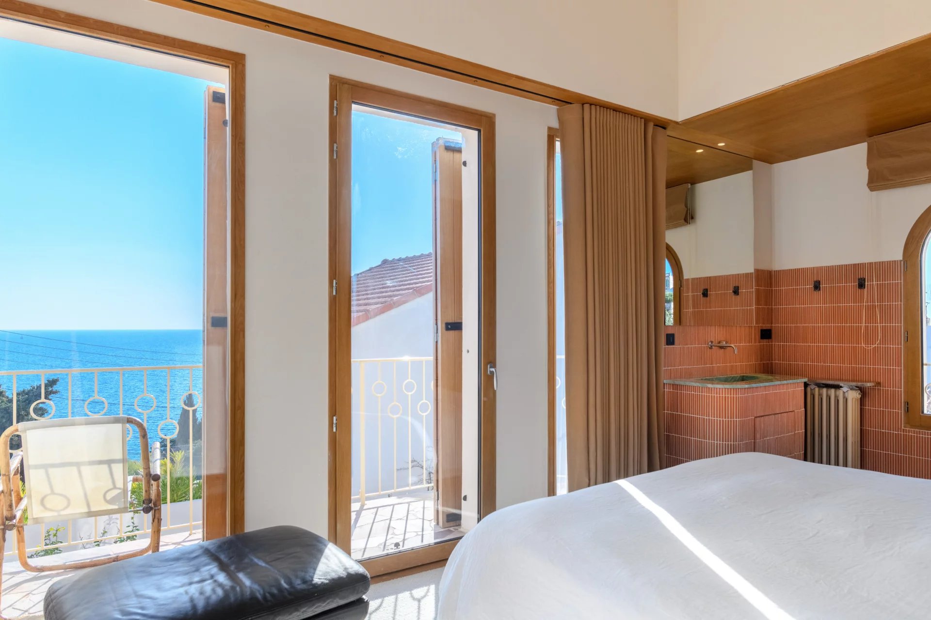 Upstairs, the sleeping area has been designed with privacy and tranquility in mind, benefiting from high-quality sound insulation. The master suite enjoys sea views, a private terrace, a dressing room, and an elegant bathroom. A second suite also features a sea-view terrace, a shower room, and a mezzanine fitted as an additional sleeping area.