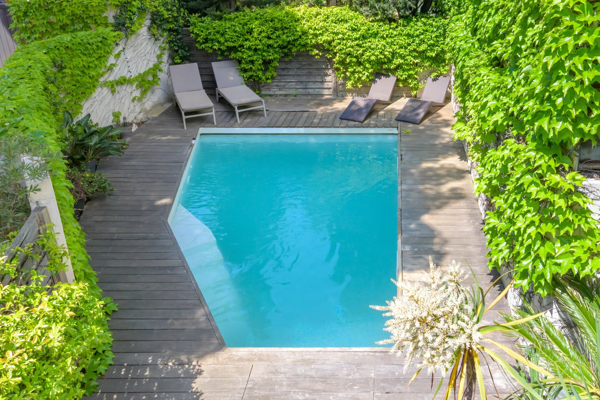 – Swimming pool surrounded by greenery for moments of leisure and outdoor entertaining
