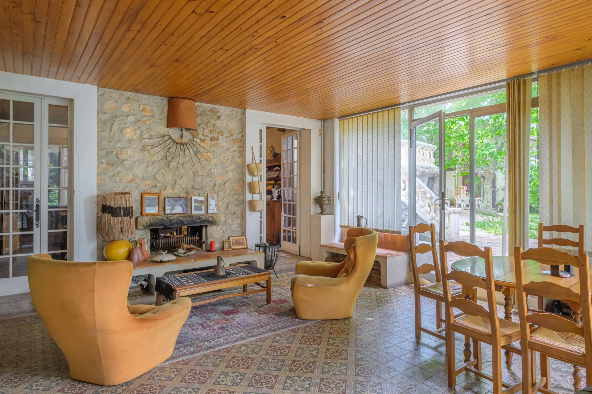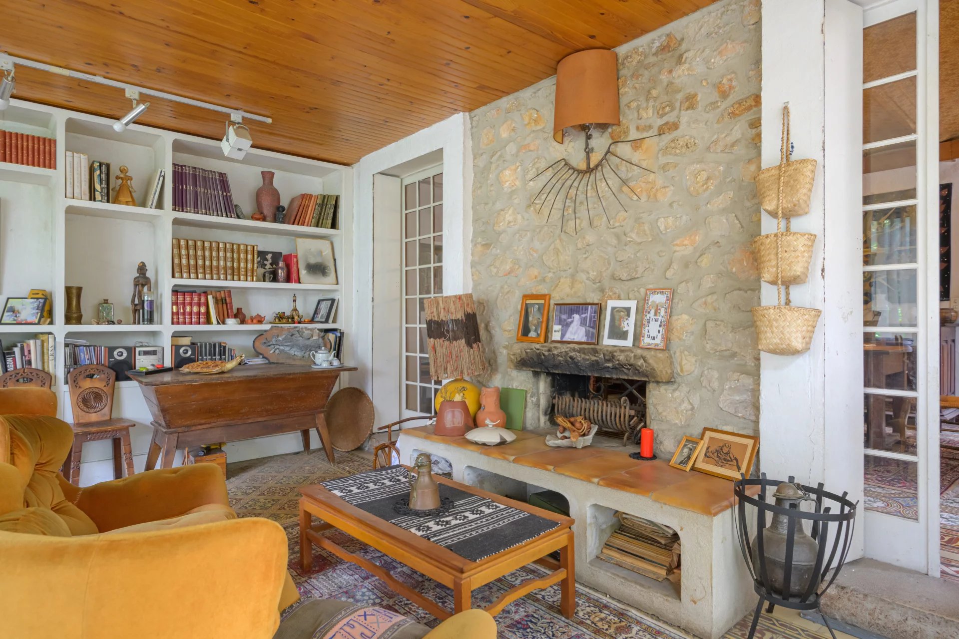 The main residence offers approximately 230 m2 of character-filled living space and retains many of its original features: terracotta and cement tile floors, period fireplaces, decorative moldings, and classic wall tapestries. Bright and spacious, the interiors open directly onto a sun-drenched terrace and garden, creating a seamless indoor-outdoor living experience.