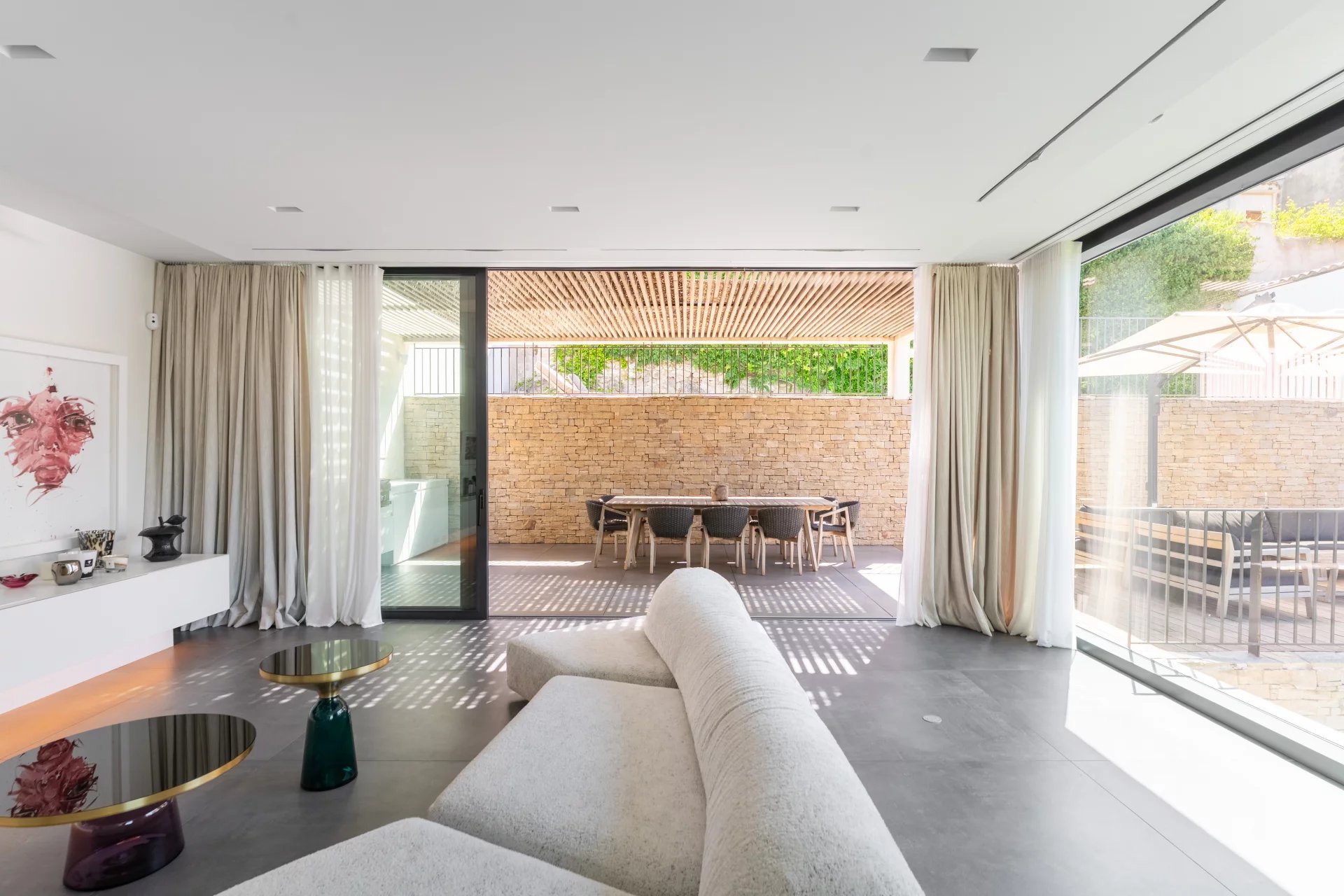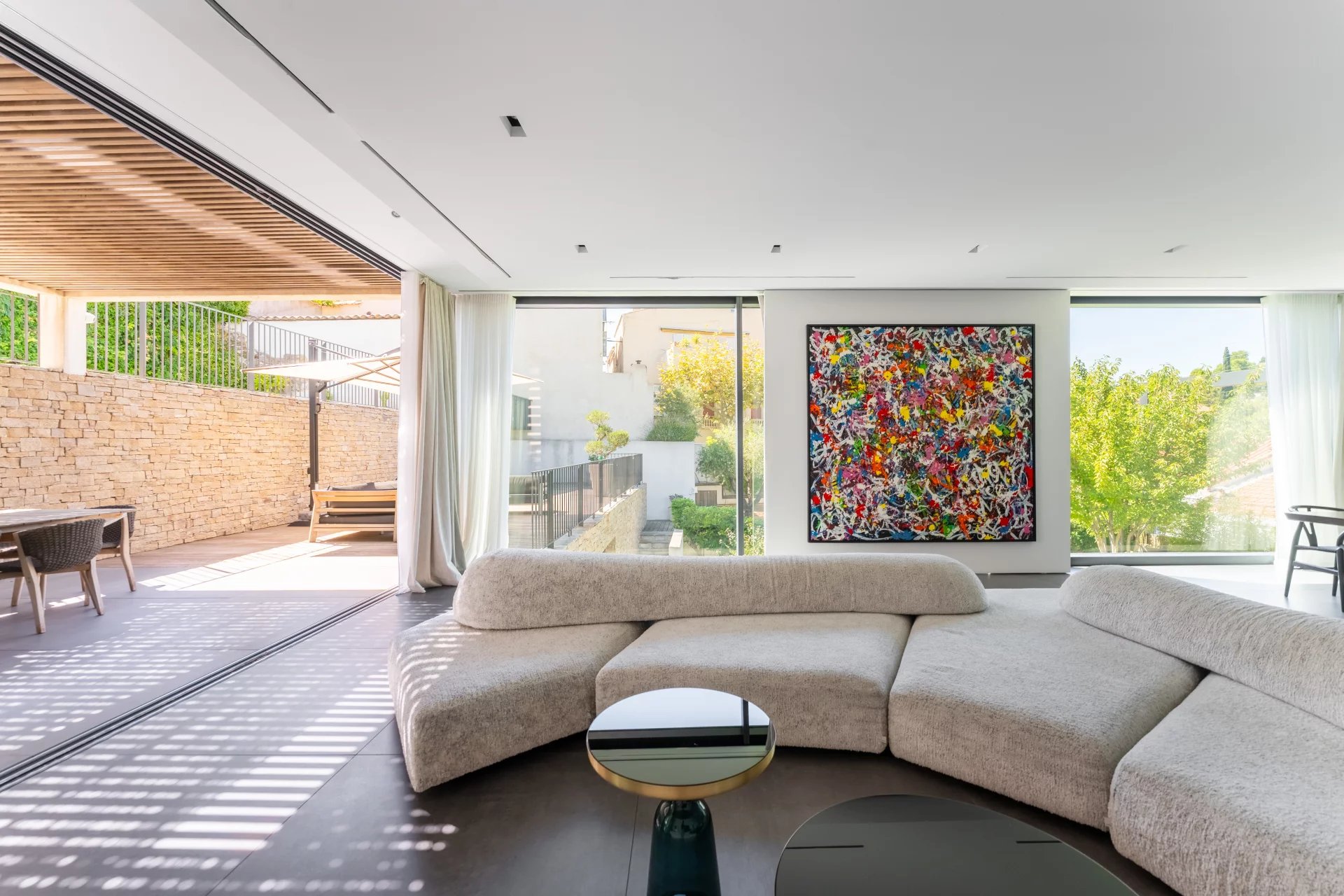 Designed by a renowned architect, the villa unfolds across two levels. The main floor features a vast living space bathed in light, seamlessly extending to the terrace – a perfect setting for moments of peace and conviviality. The generous dining kitchen, fully equipped with high-end appliances, will delight gastronomes and entertainers alike.