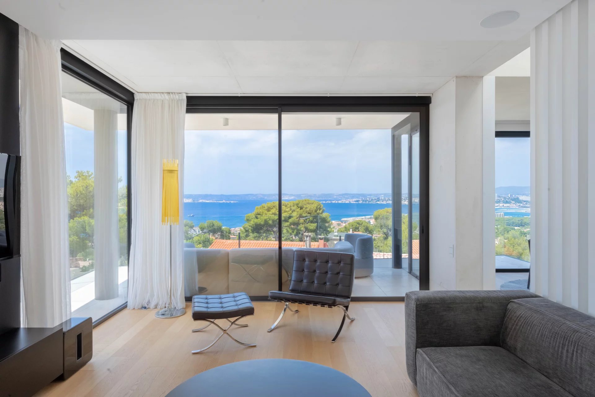 A magnificent architect-designed villa with stylish clean lines – created by TOGU architecture Stephane Torres and Alain Donate – overlooking the sea in an extremely protected and confidential environment.